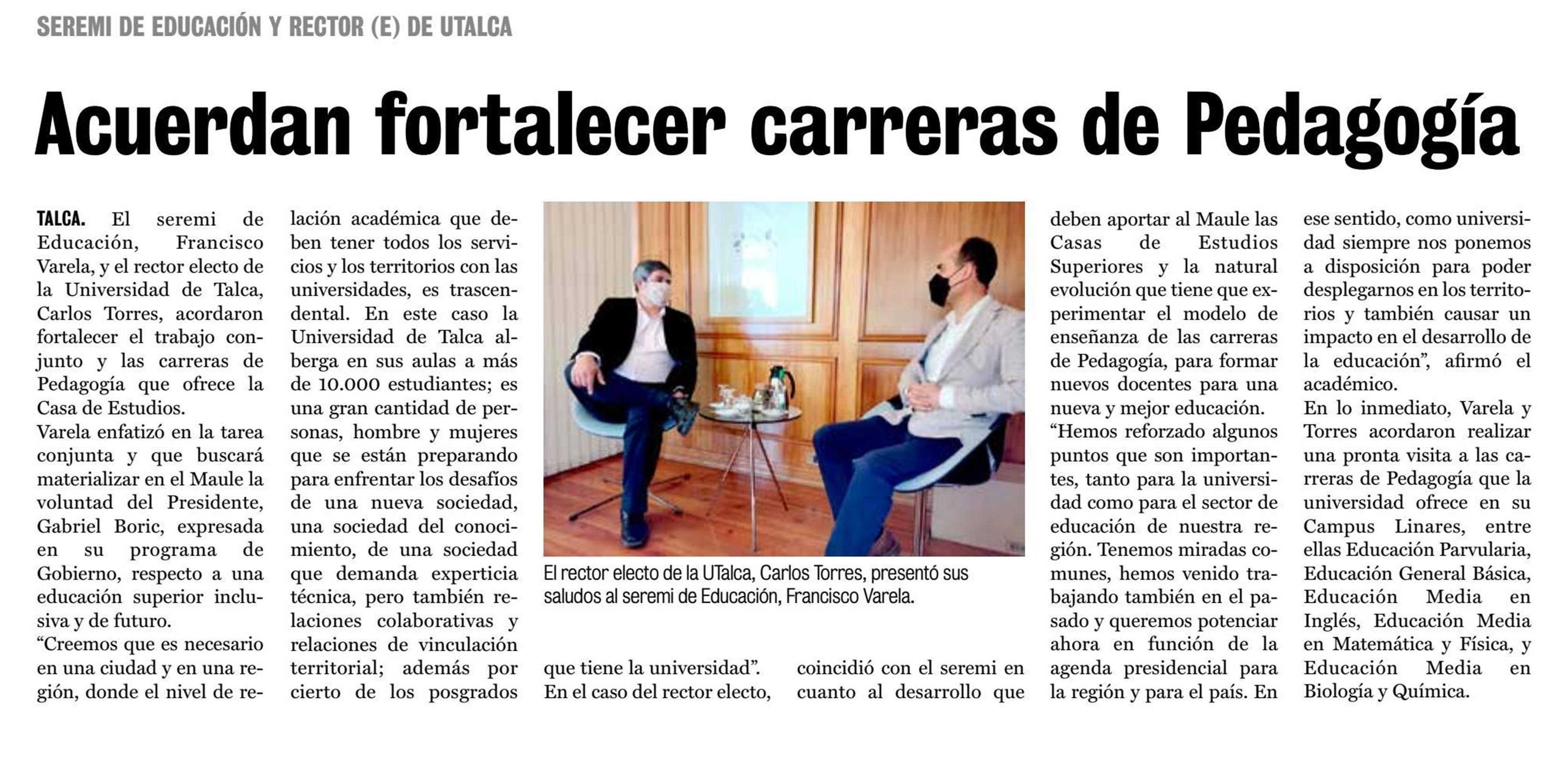 Acuerdan fortalecer carreras de Pedagogía. Se refiere Carlos Torres, rector electo de la UTalca.