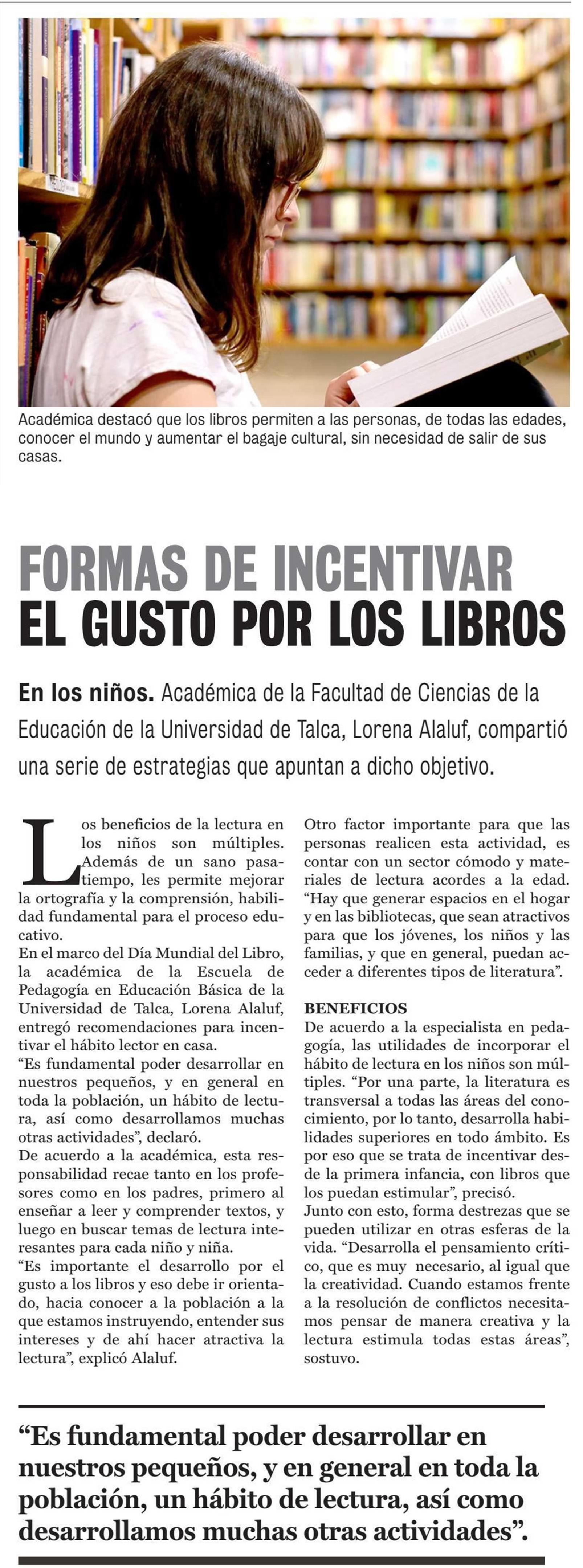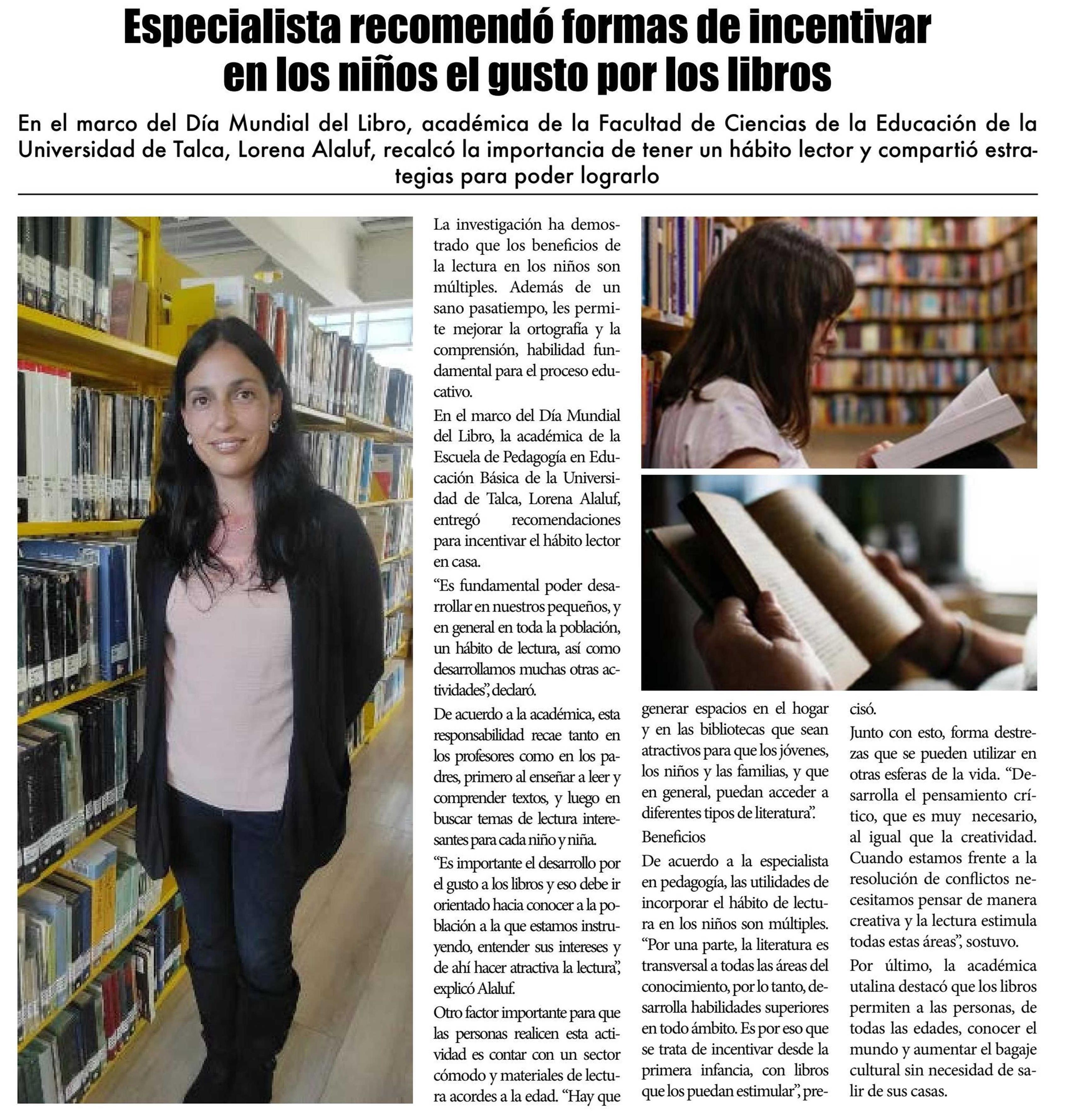 Especialista recomienda formas de incentivar el gusto por los libros. Se refiere Lorena Alaluf, académica de la Facultad de Ciencias de la Educación.