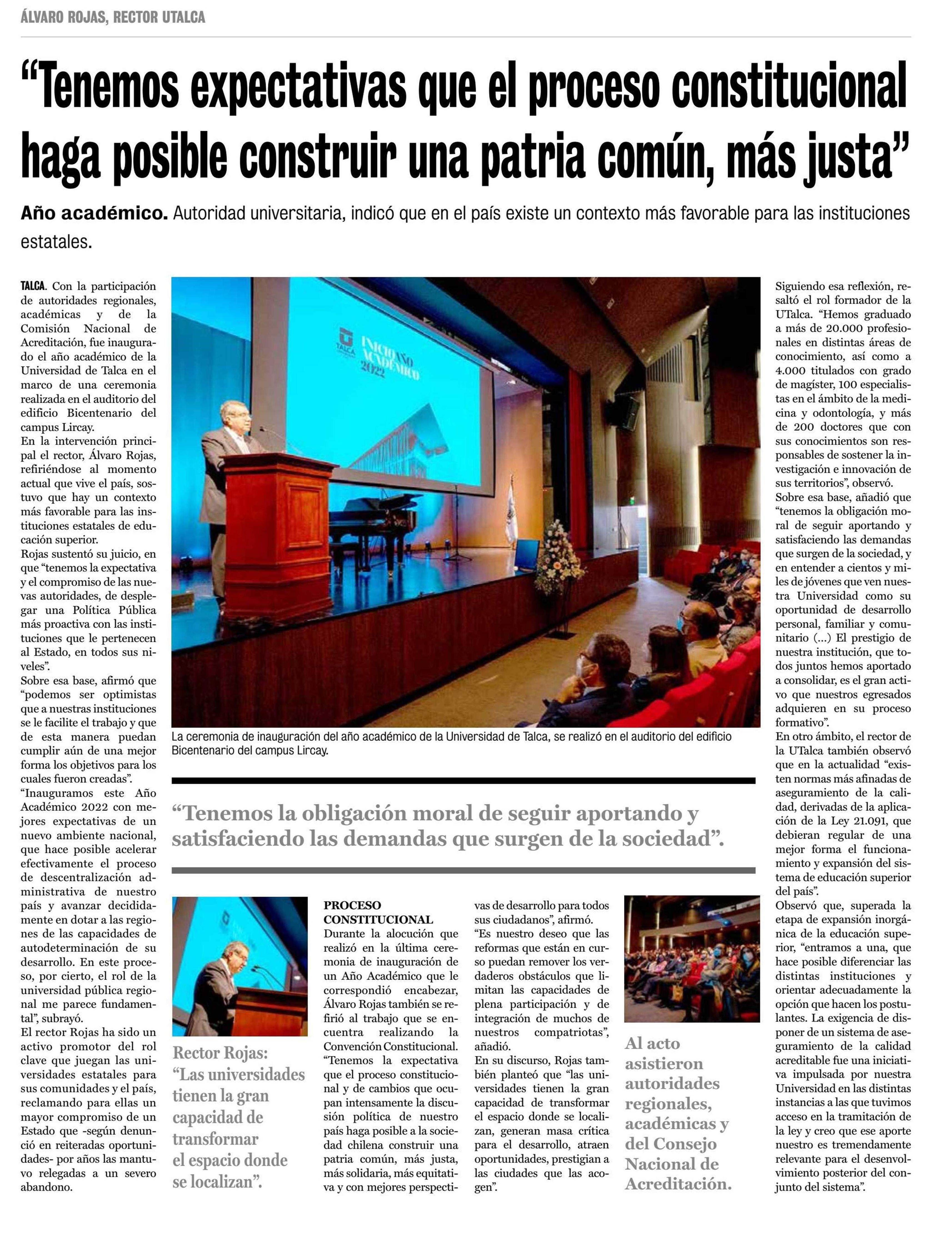 Rector UTalca Álvaro Rojas: “Tenemos expectativas que el proceso constitucional haga posible construir una patria común, más justa”.