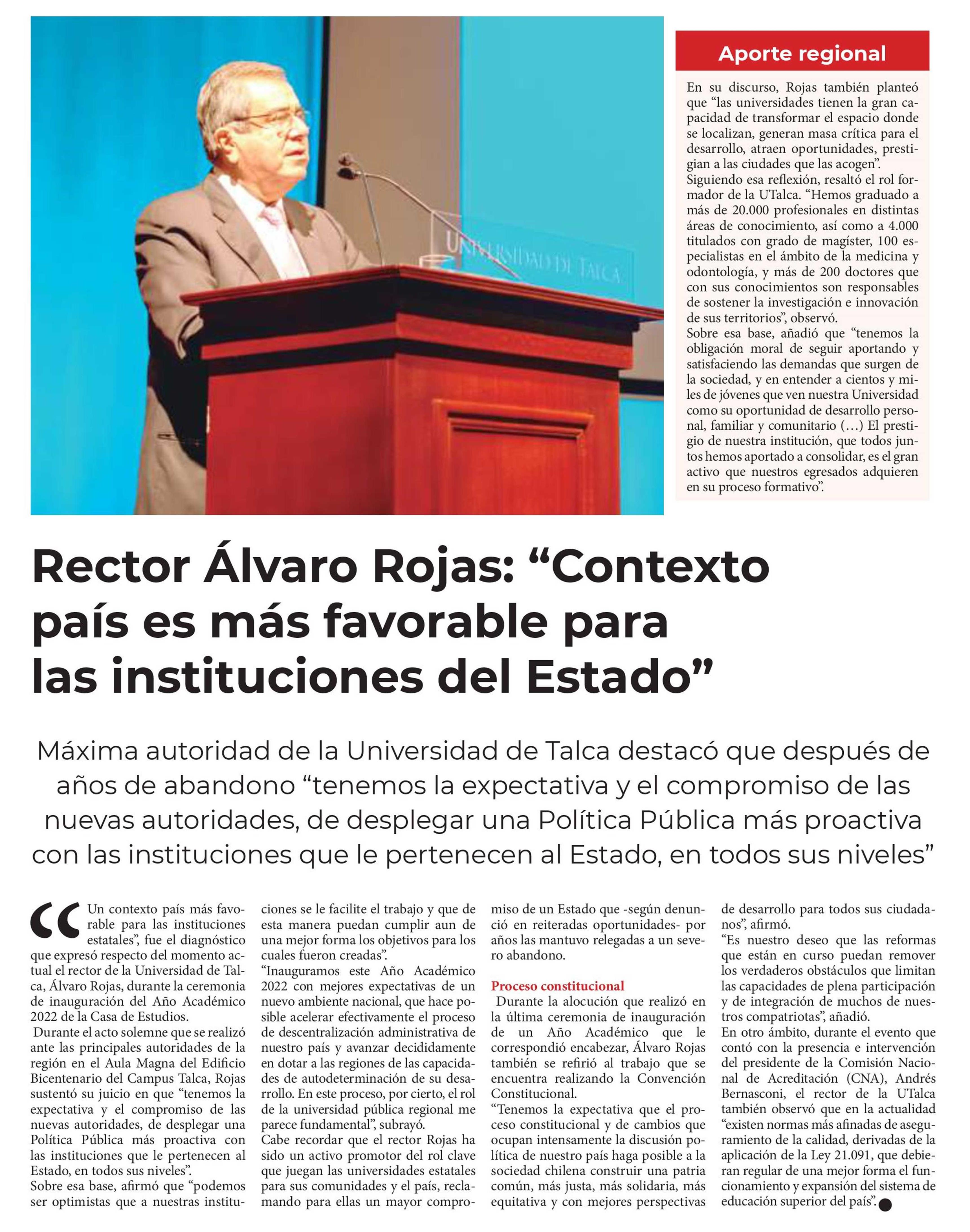 Rector Álvaro Rojas: “Contexto país es más favorable para las instituciones del Estado” .