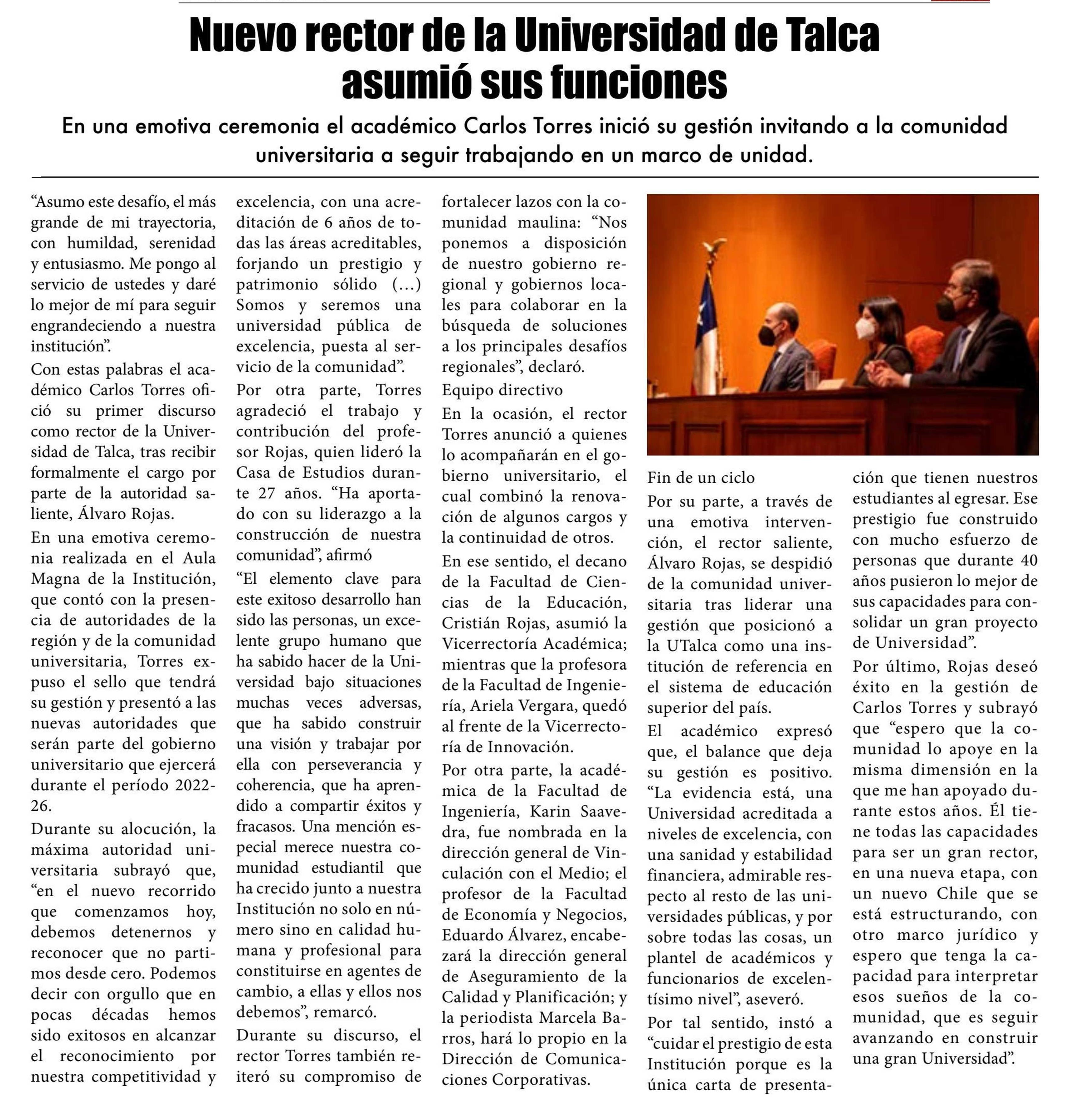 Nuevo rector de la Universidad de Talca asumió sus funciones.