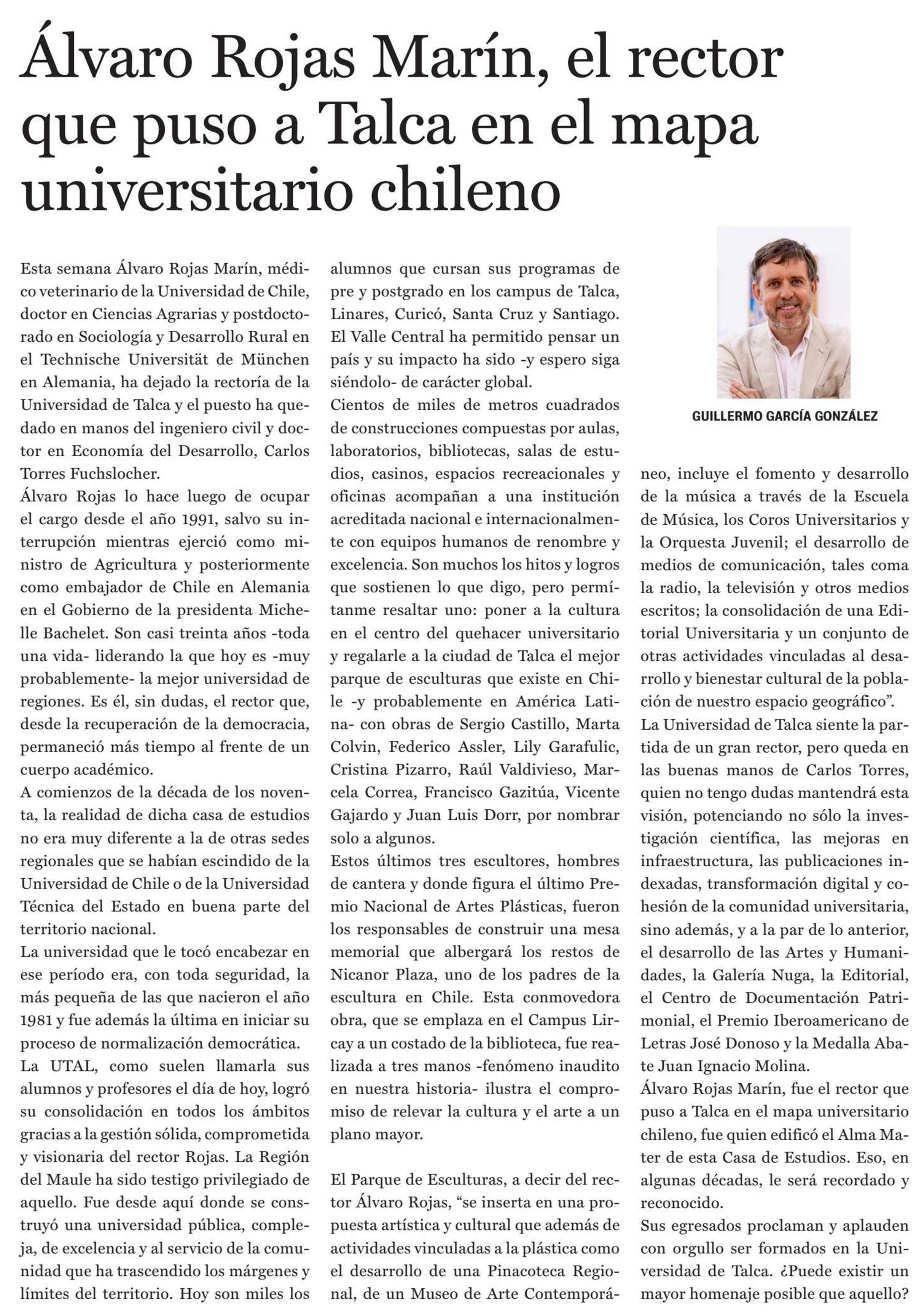 Álvaro Rojas Marín, el rector que puso a Talca en el mapa universitario chileno.