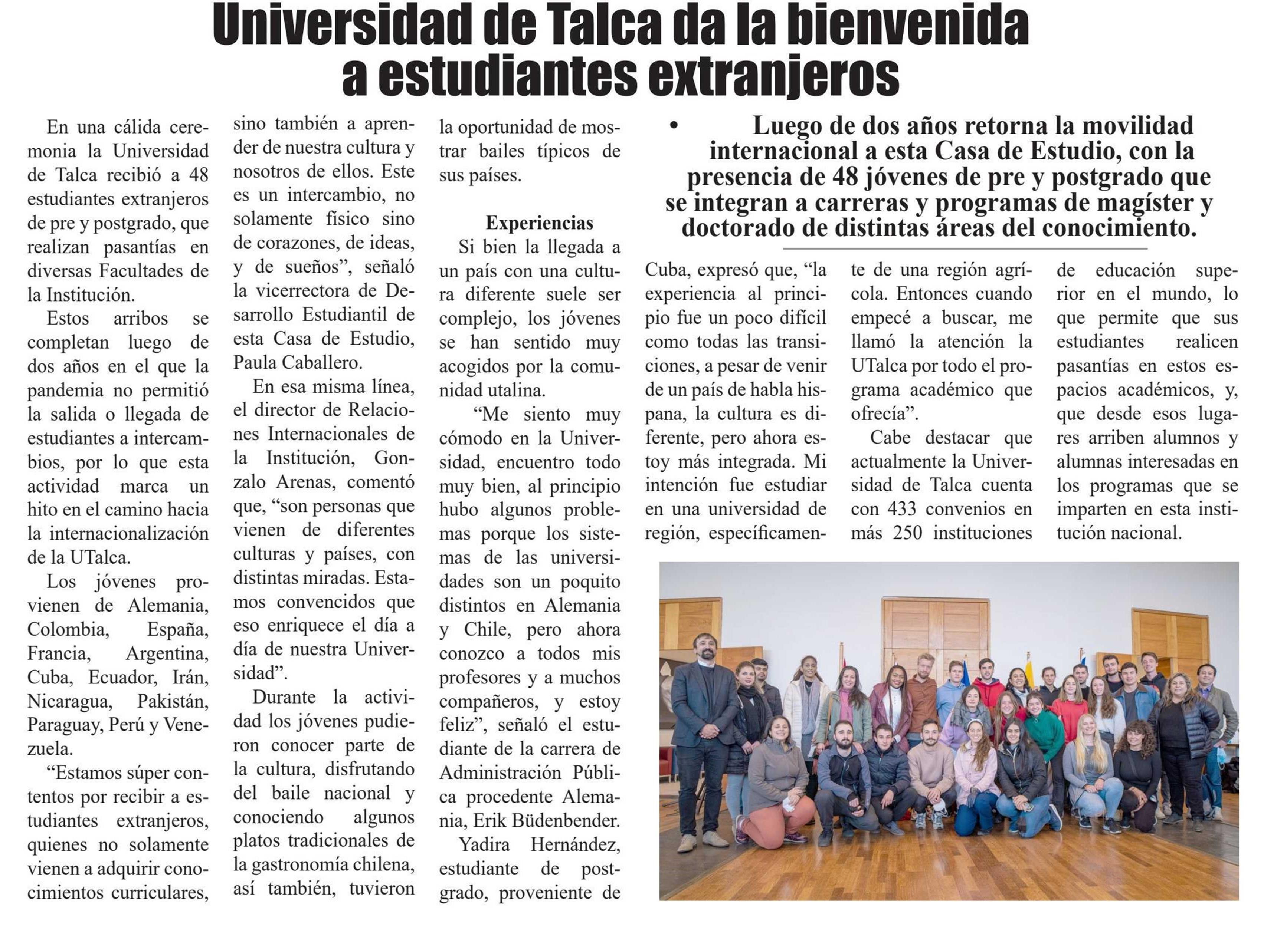 Universidad de Talca da la bienvenida a estudiantes extranjeros