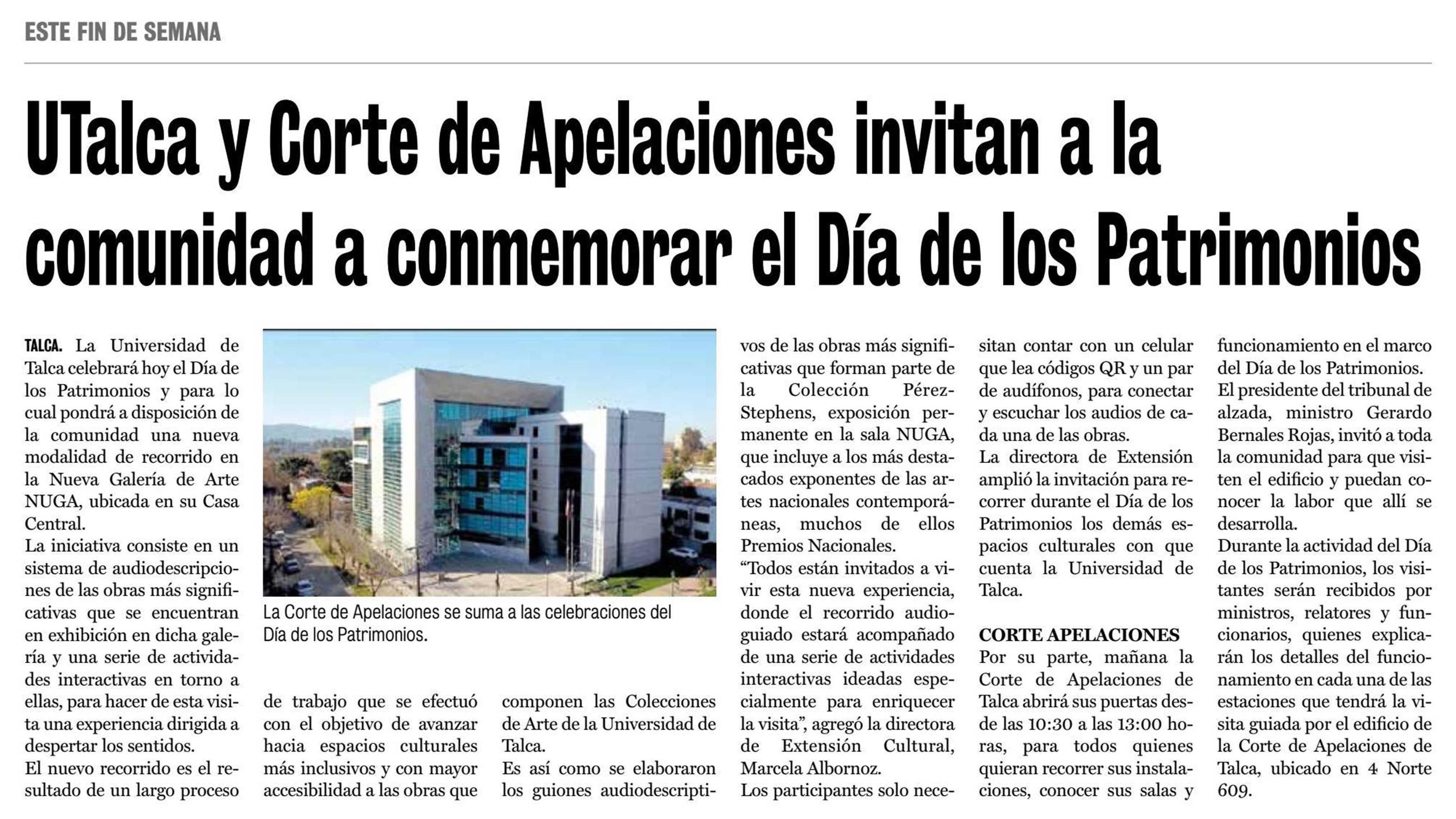 UTalca y Corte de Apelaciones invitan a la comunidad a conmemorar el Día de los Patrimonios.