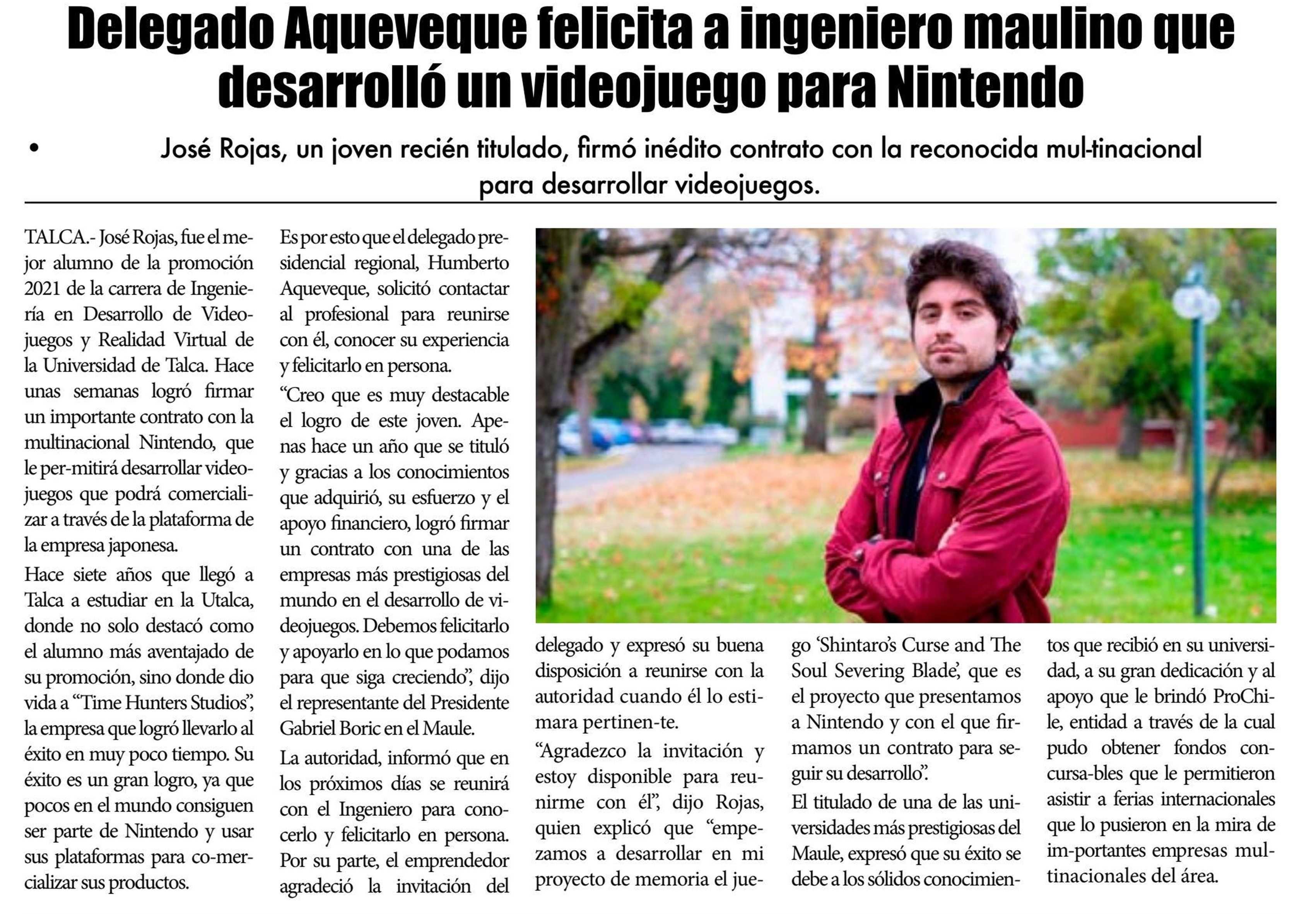 Delegado Aqueveque felicita a Ingeniero maulino que desarrolló un videojuego para Nintendo.