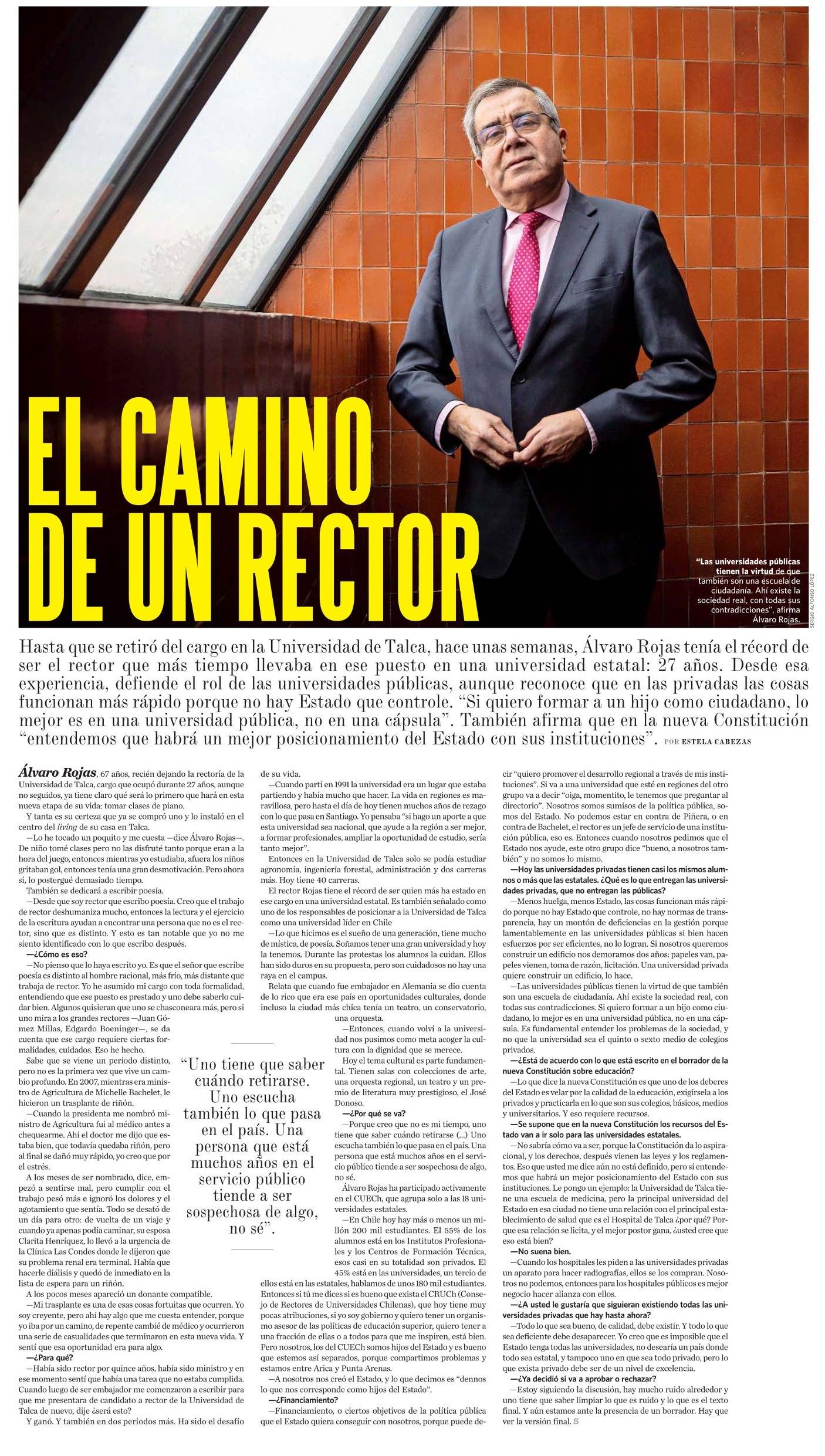El camino de un rector. Se refiere Álvaro Rojas, académico de la Facultad de Ciencias Agrarias.
