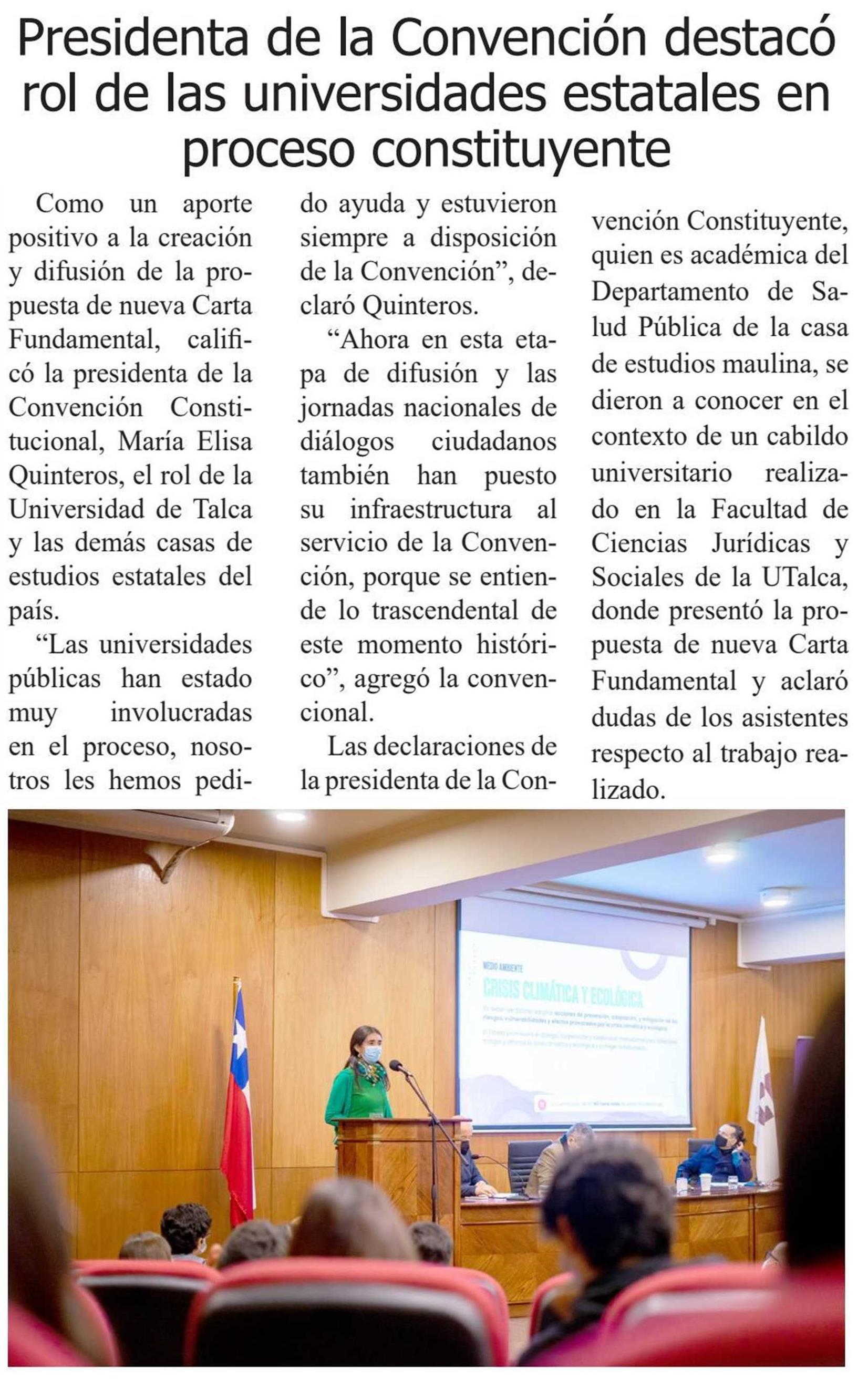 Presidenta de la Convención Constitucional participó en un Cabildo Abierto en la U. de Talca.
