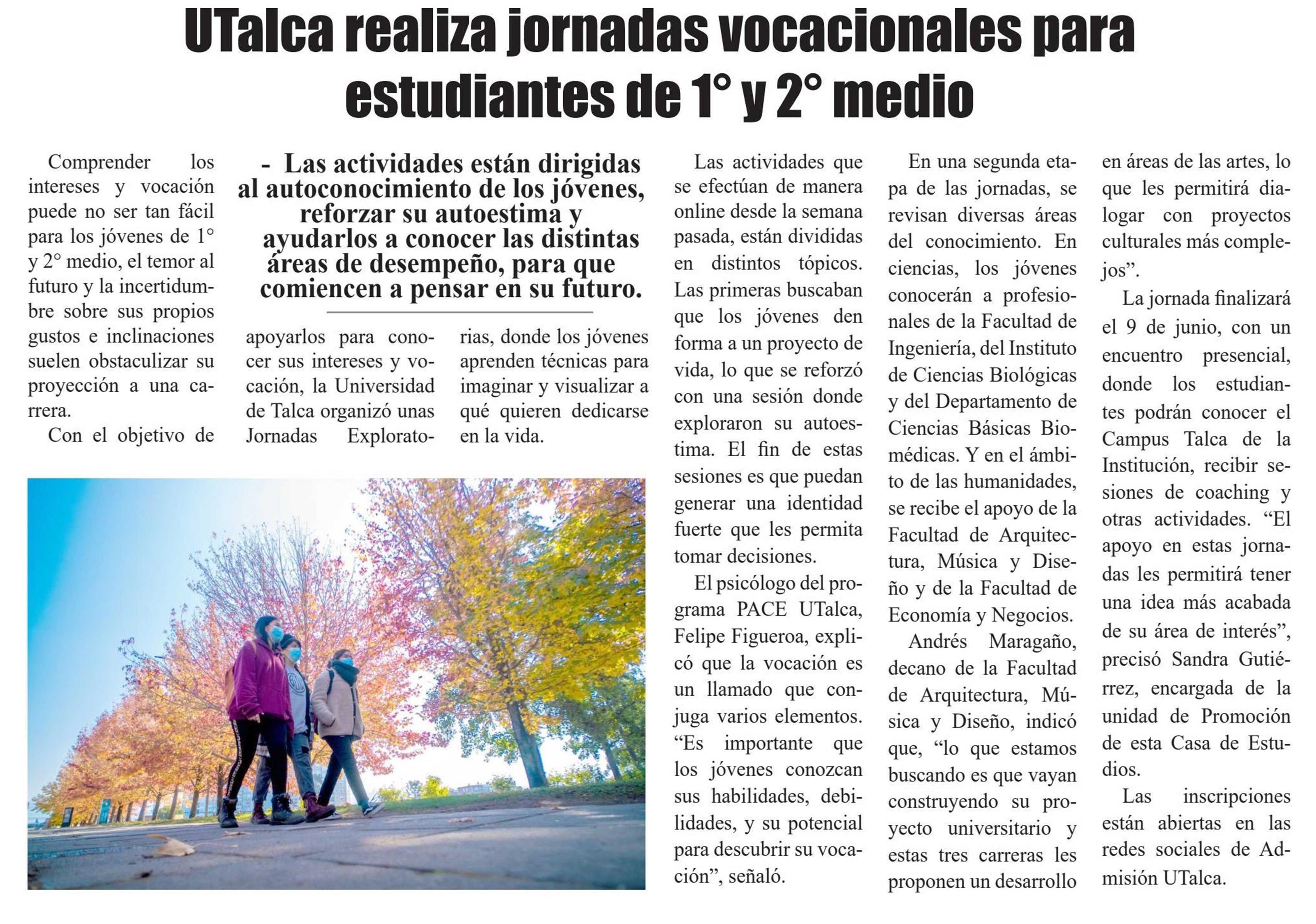 UTalca realiza jornadas vocacionales para estudiantes de 1° y 2° medio.