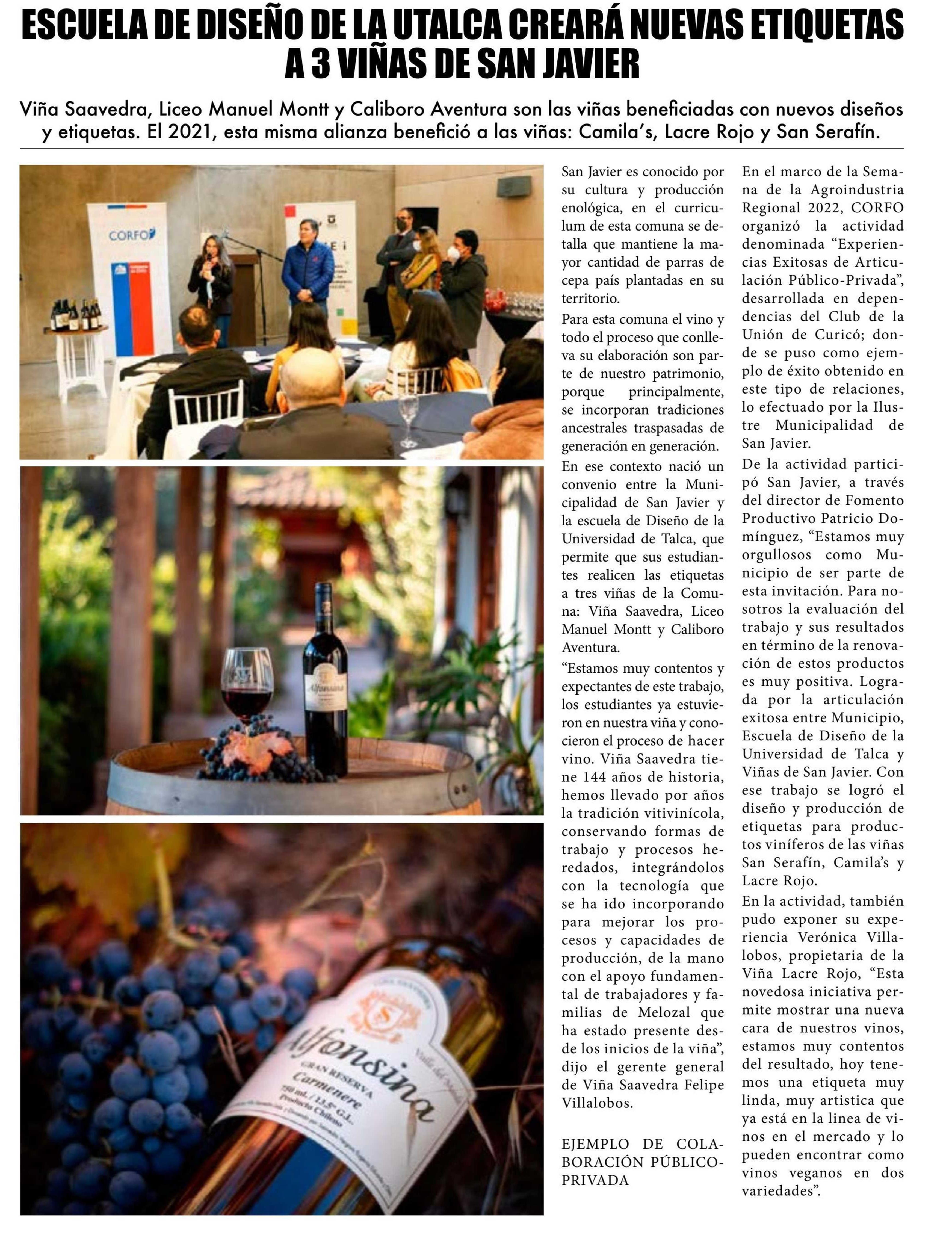 Escuela de Diseño de la UTalca creará nuevas etiquetas a 3 viñas de San Javier.