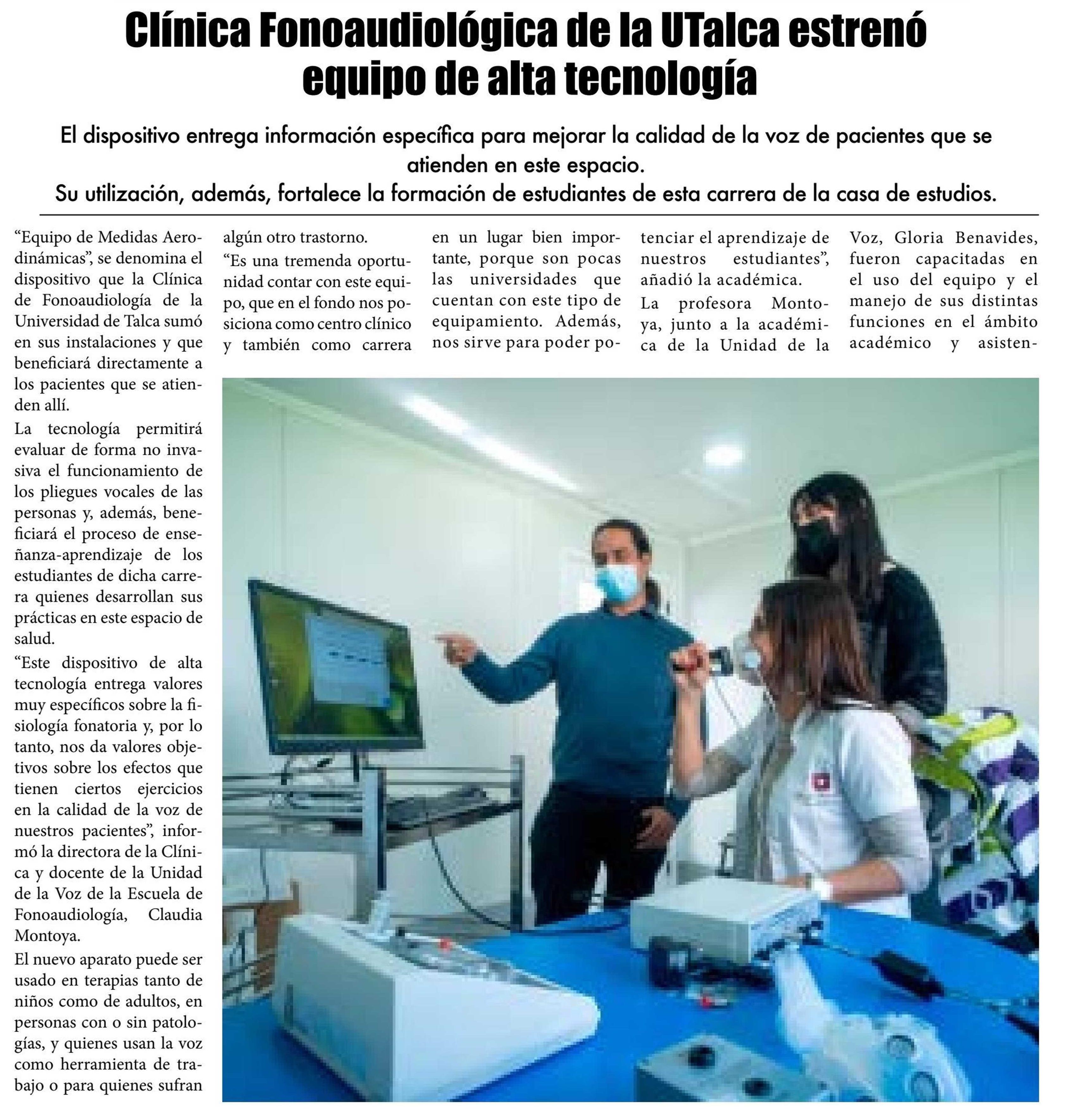 Clínica Fonoaudiológica de la UTalca estrenó equipo de alta tecnología. Se refiere Claudia Montoya, académica de la Escuela de Fonoaudiología.