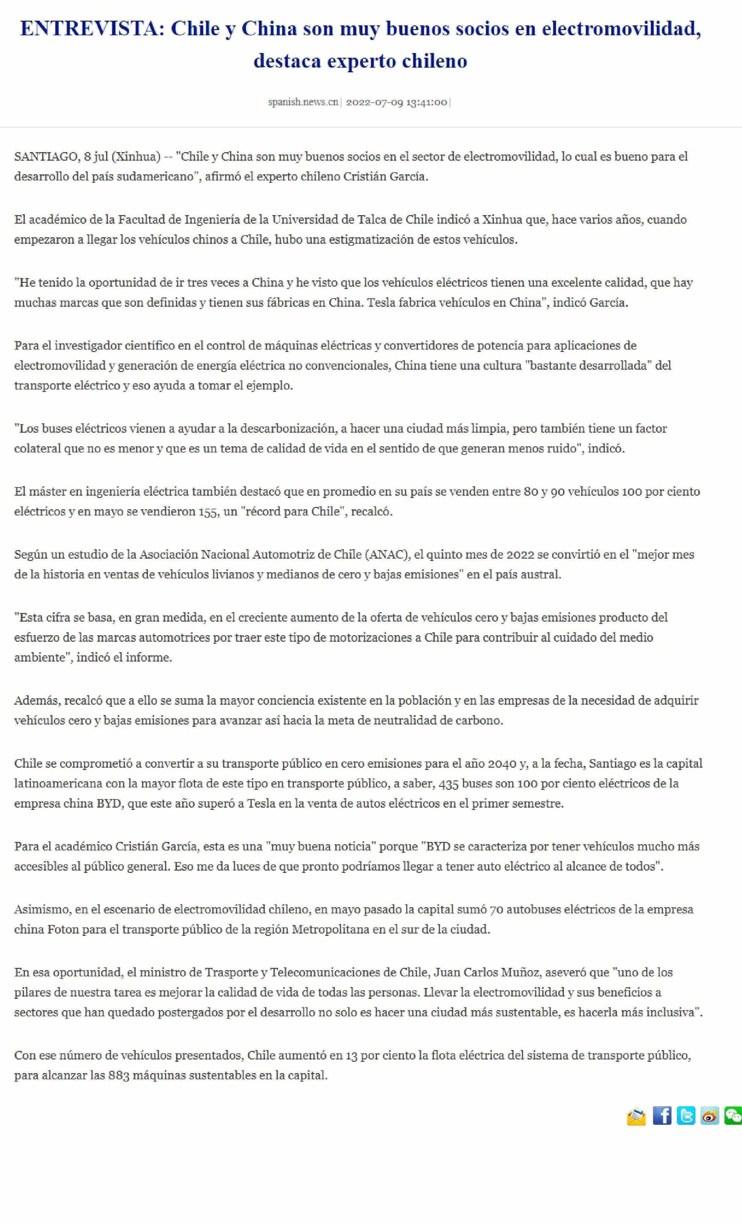Chile y China son muy buenos socios en electromovilidad, destaca experto chileno. Se refiere Cristian García, académico de la Facultad de Ingeniería.