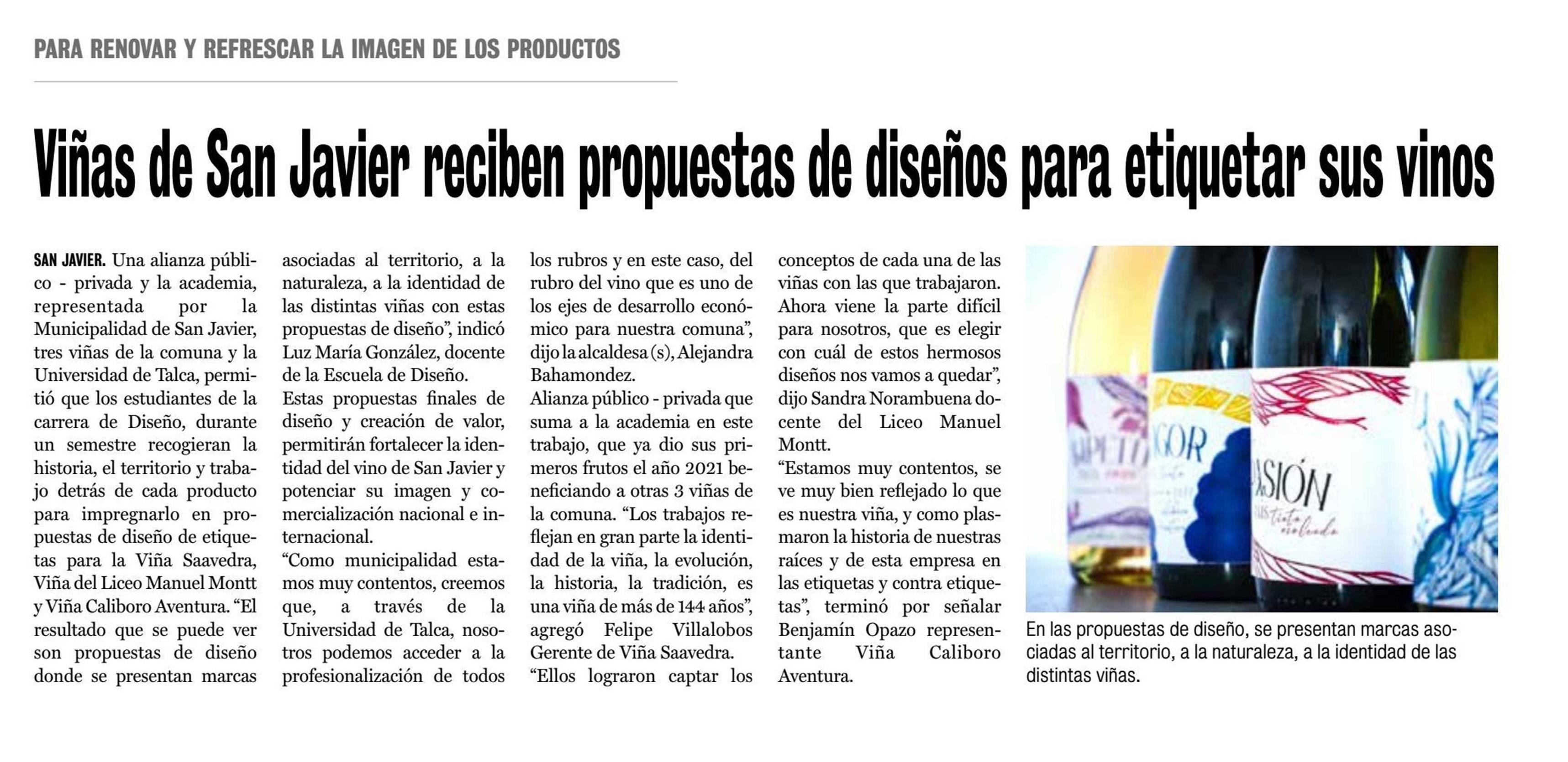 Crean etiquetas para 3 viñas de San Javier. Se menciona a la Escuela de Diseño.
