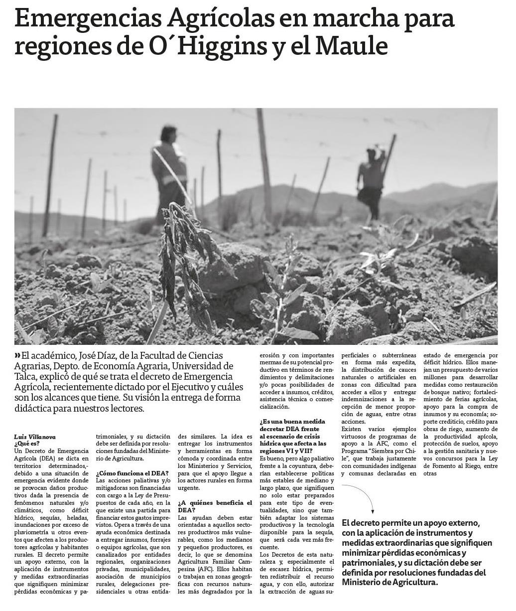 Emergencias Agrícolas en marcha para regiones de O’Higgins y el Maule. Se refiere José Díaz, académico de la Facultad de Ciencias Agrarias.
