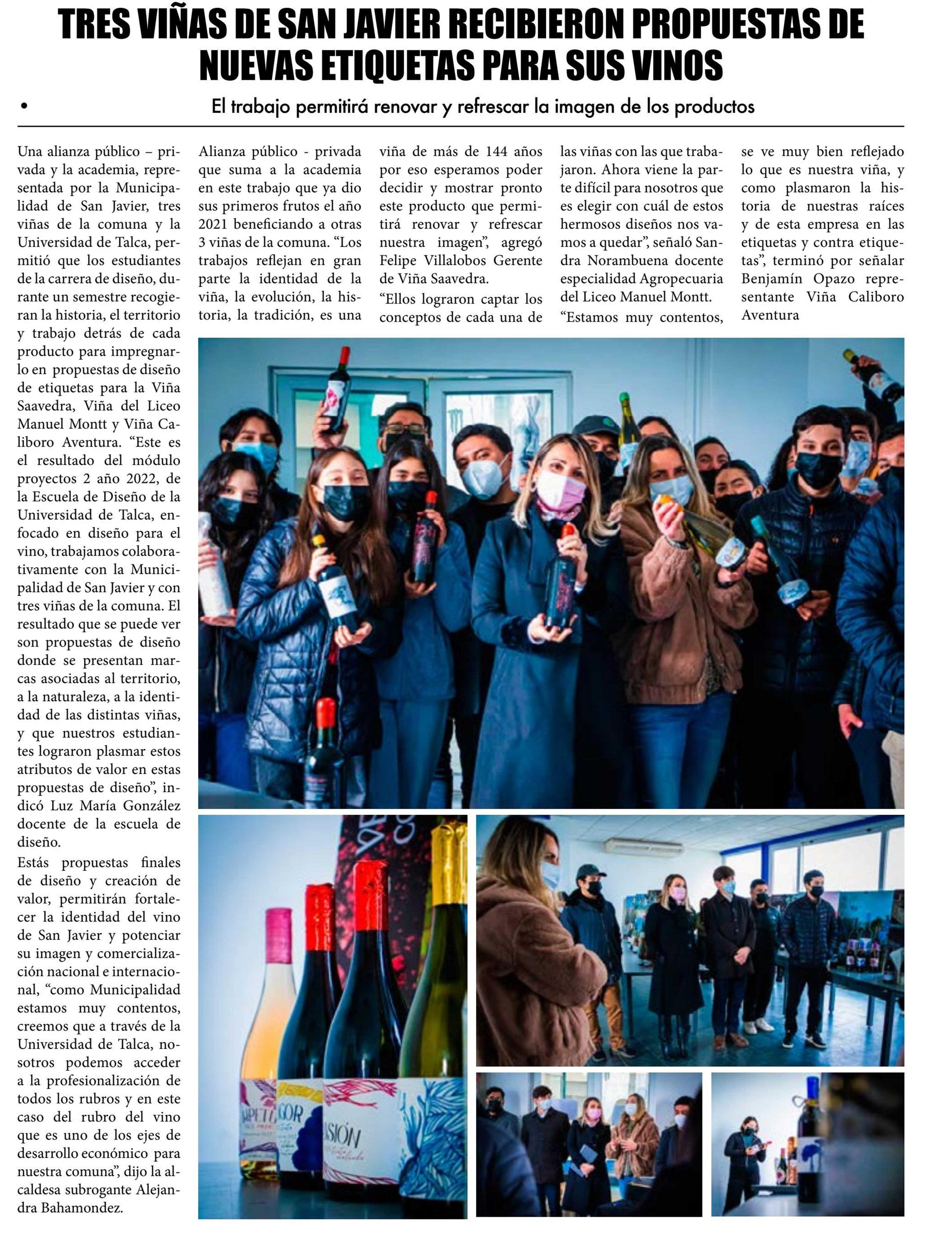 Viñas de San Javier reciben propuestas de diseños para etiquetar sus vinos. Se menciona a la Escuela de Diseño.