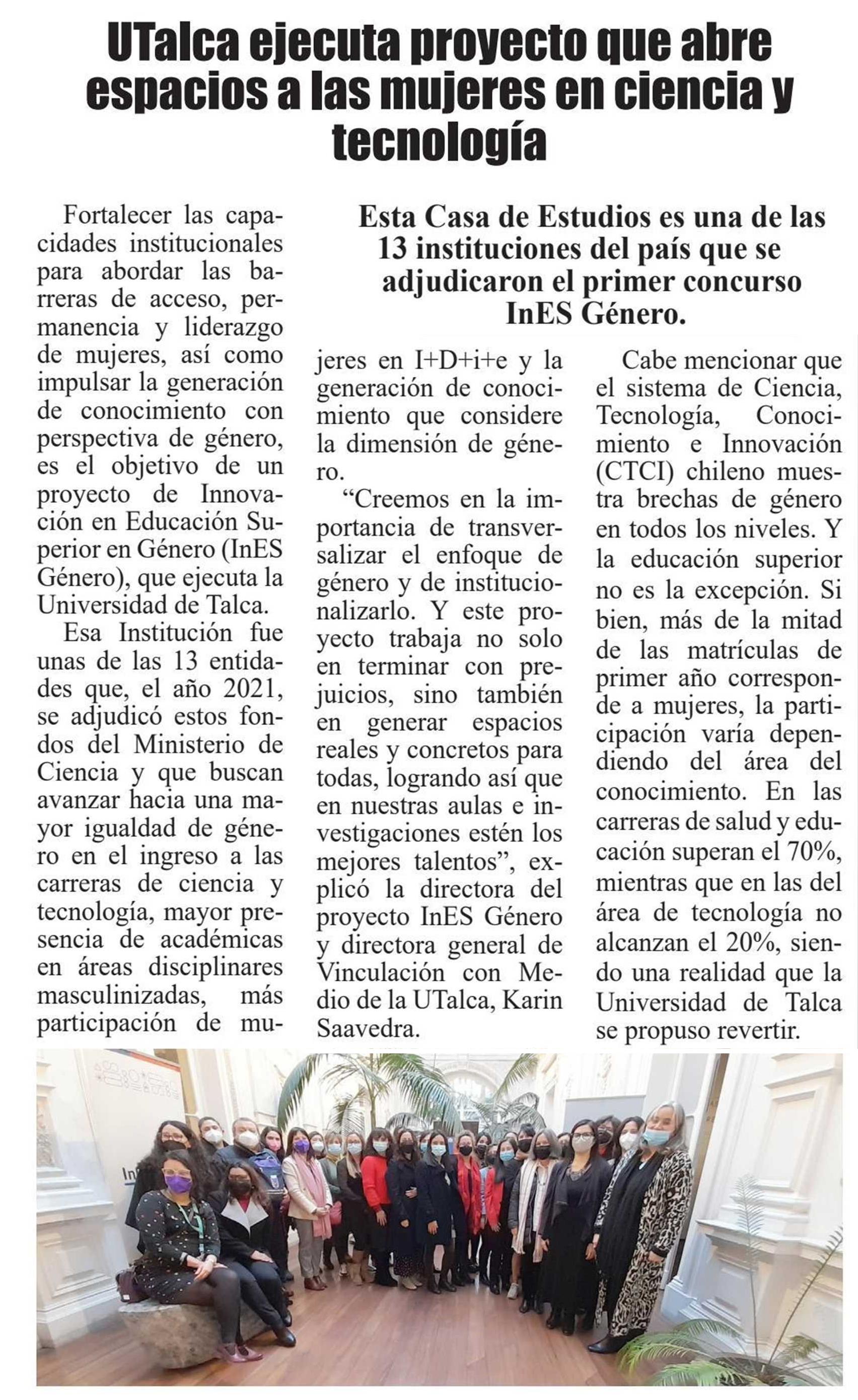 UTalca ejecuta proyecto que abre espacios a las mujeres en ciencia y tecnología. Se refieren Karin Saavedra, directora general de Vinculación con el Medio y Natalia Veliz, directora de Género.