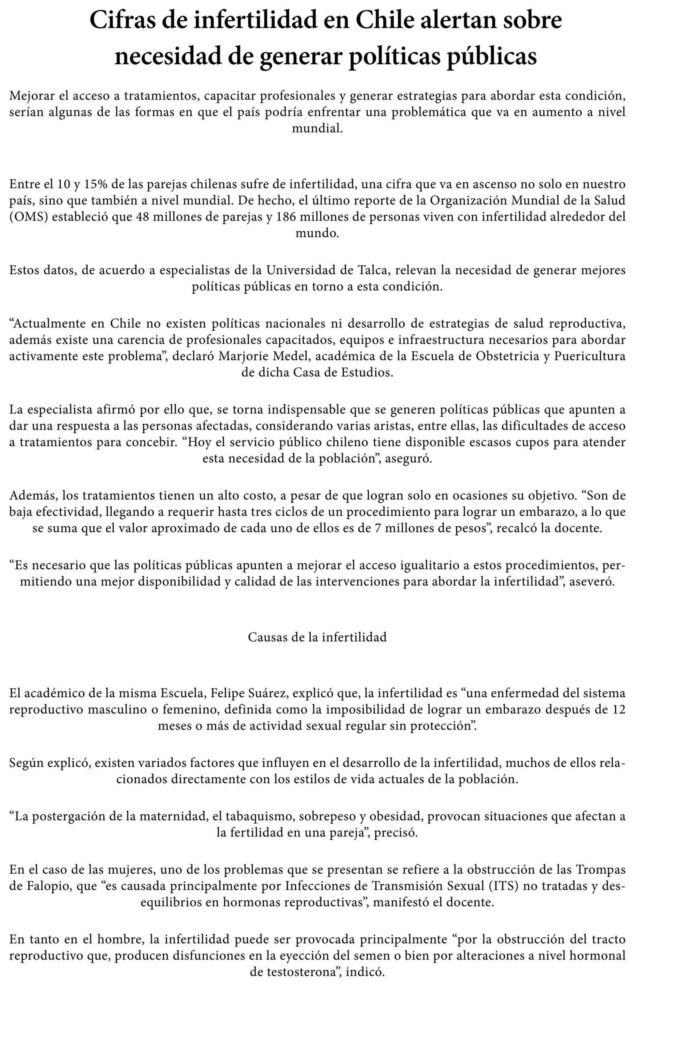 Cifras de infertilidad en Chile alertan sobre necesidad de generar políticas públicas. Se refieren Marjorie Medel y Felipe Suárez, académicos de la Escuela de Obstetricia y Puericultura.