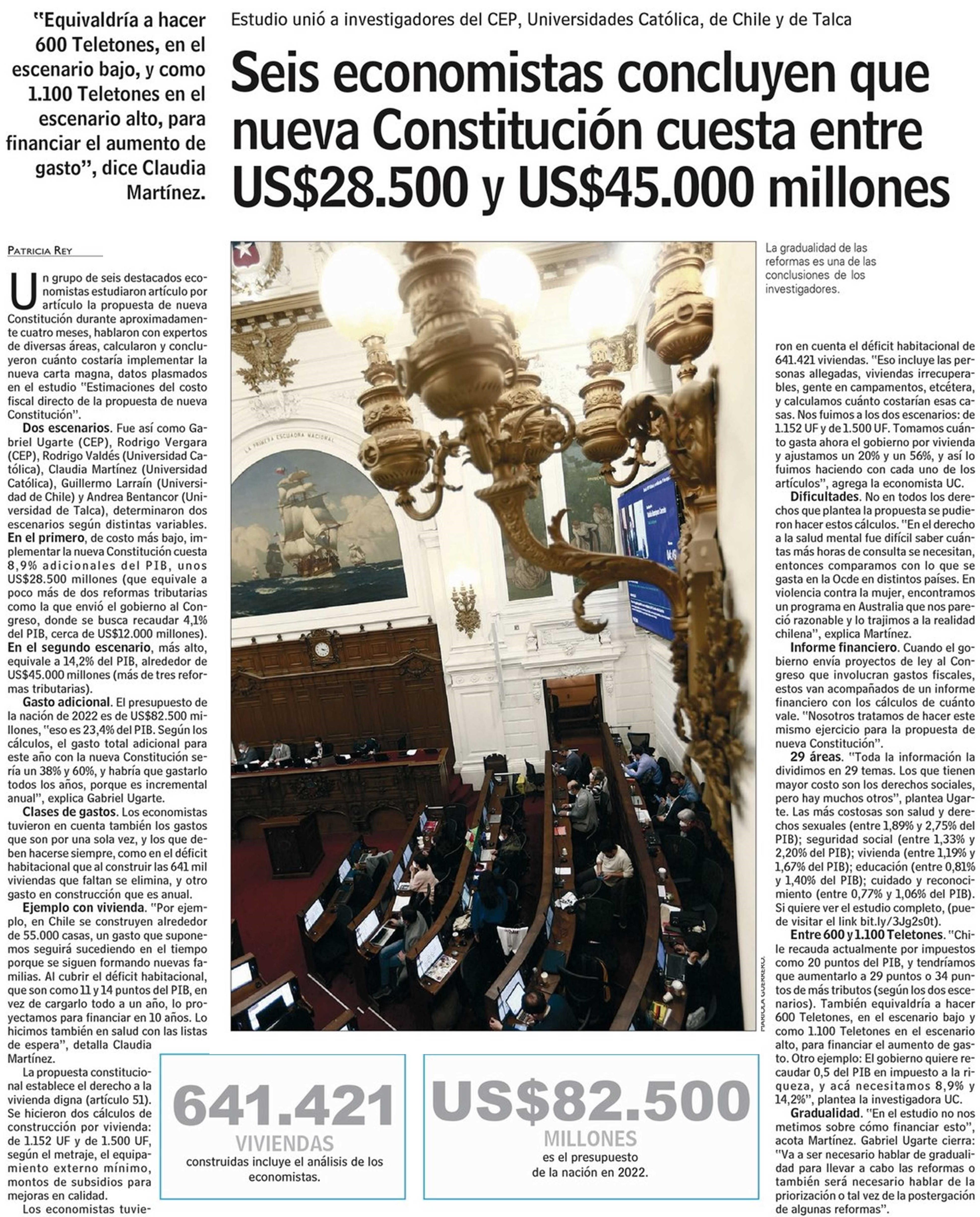 El costo de la Nueva Carta Magna, hasta 45 mil millones de dólares. Se menciona a la UTalca.