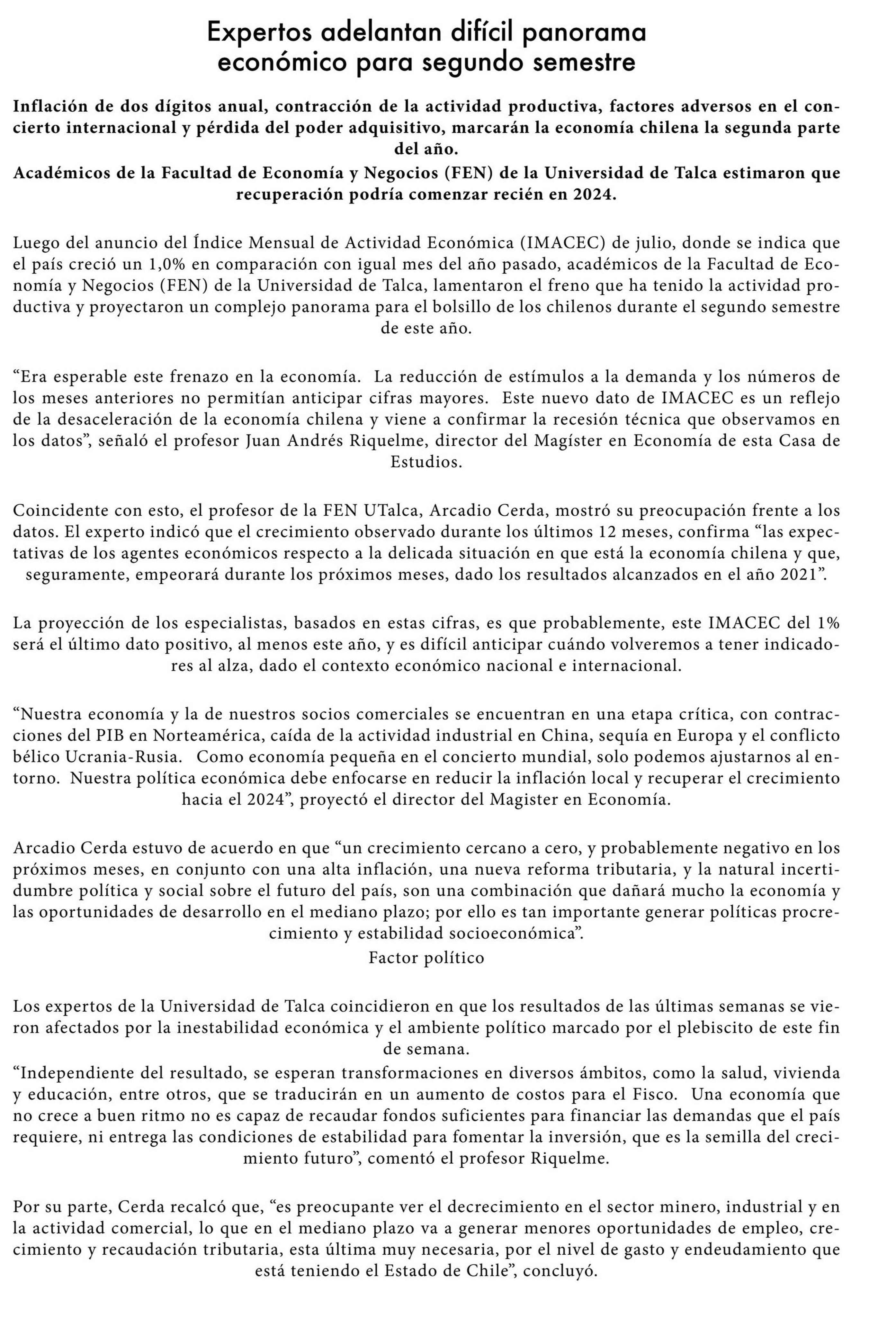 Panel de actualidad. Se refiere Juan Andrés Riquelme, director del Magíster en Economía.