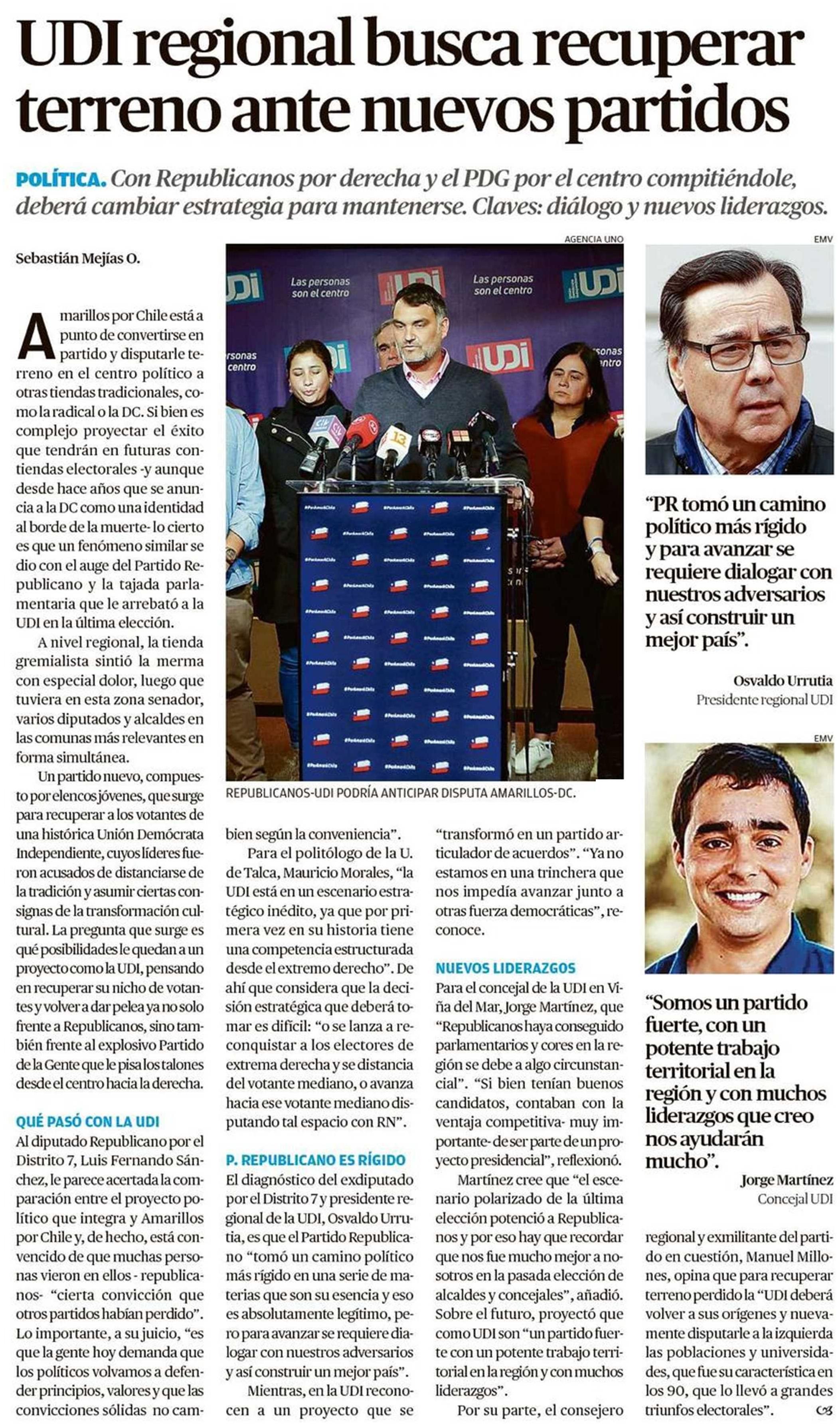 UDI regional busca recuperar terreno ante nuevos partidos. Se refiere Mauricio Morales, director del Centro de Análisis Político (CAP).