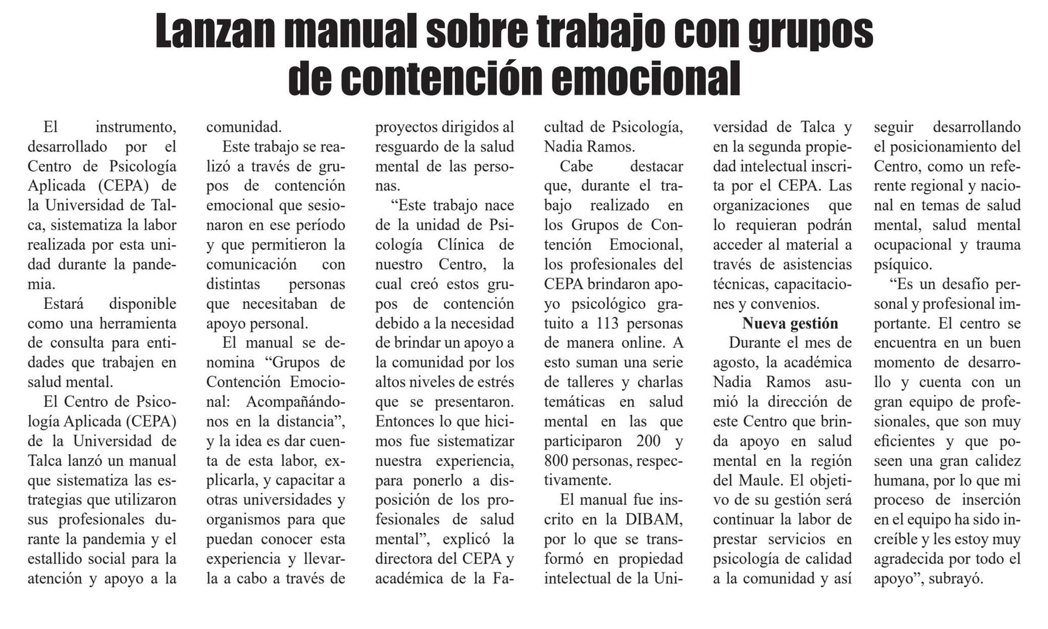Lanzan manual sobre trabajo con grupos de contención emocional. Se refiere Nadia Ramos, directora del Centro de Psicología Aplicada (CEPA).