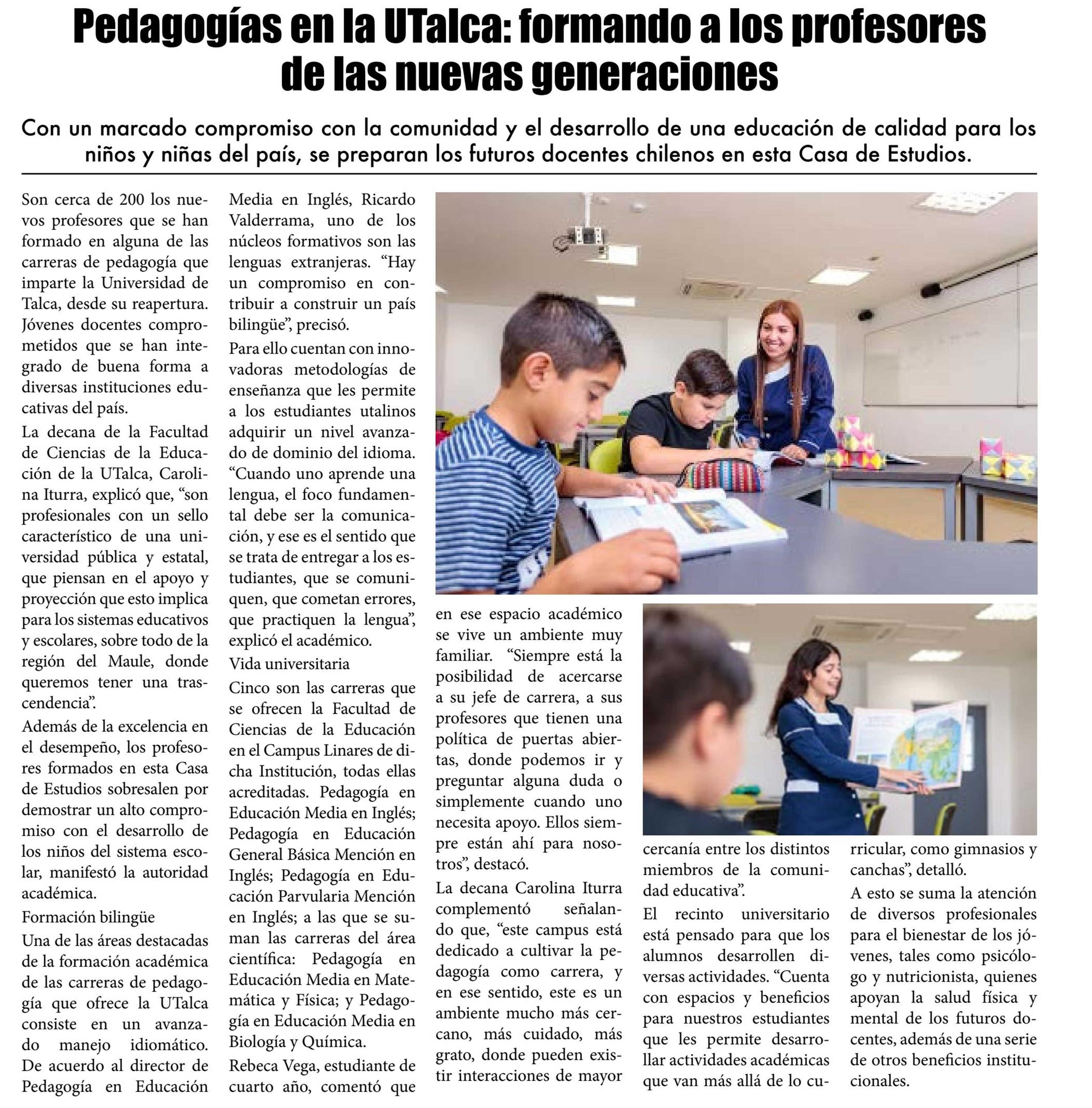 Pedagogías en la UTalca: formando a los profesores de las nuevas generaciones. Se refieren Carolina Iturra, decana de la Facultad de Ciencias de la Educación; Ricardo Valderrama, director de Pedagogía en Educación Media en Inglés; y Rebeca Vega, estudiante de Pedagogía.