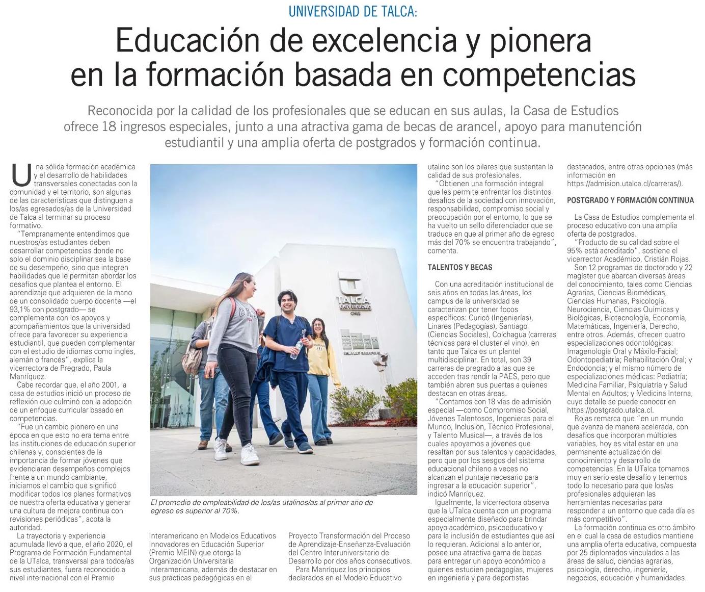 Educación de excelencia y pionera en la formación basada en competencias.