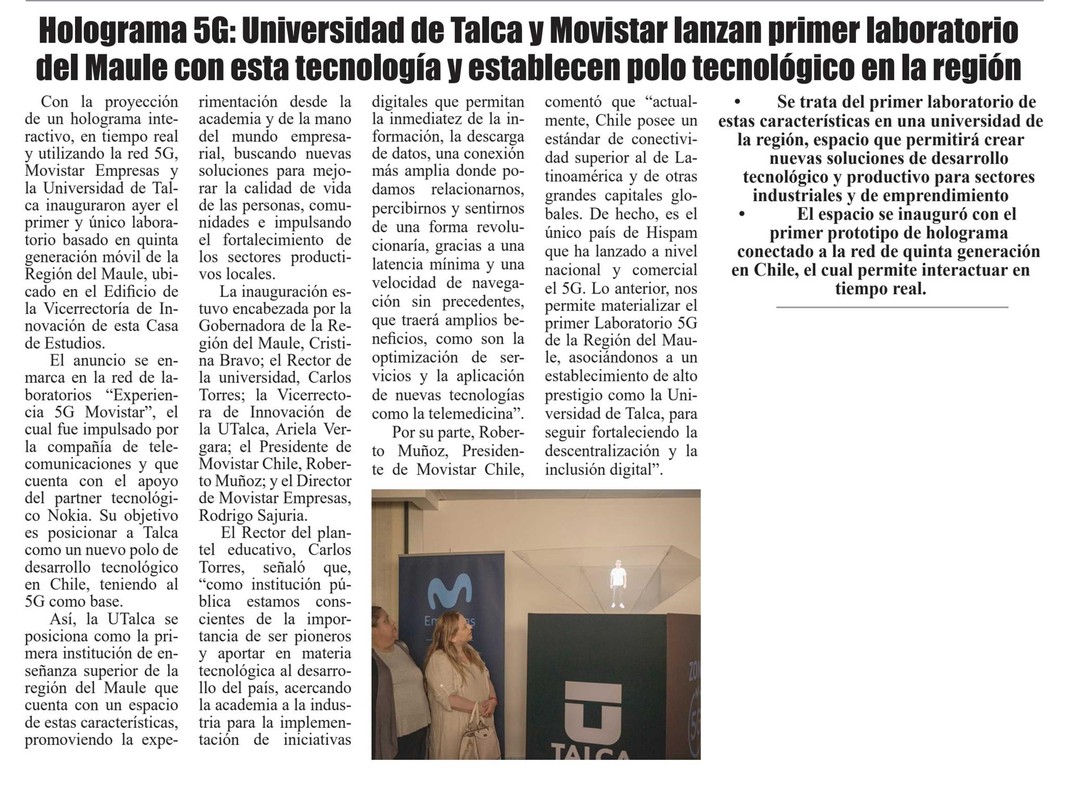 Interactuando con un holograma: U. de Talca y Movistar inauguran primer laboratorio 5G del Maule.