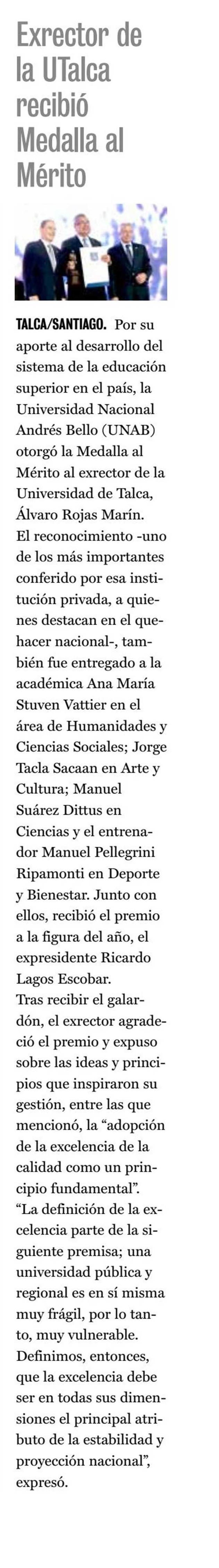 Exrector de la UTalca recibió Medalla al Mérito. Se refiere Álvaro Rojas Marín.