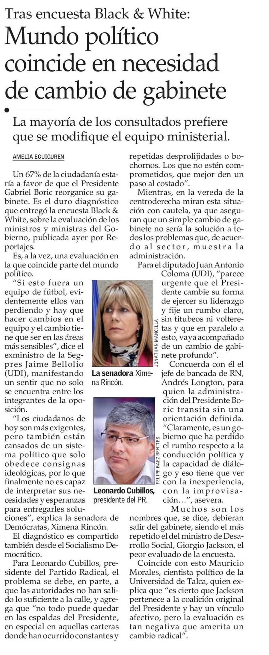 Mundo político coincide en necesidad de cambio de gabinete. Se refiere Mauricio Morales Quiroga, director del Centro de Análisis Político (CAP).