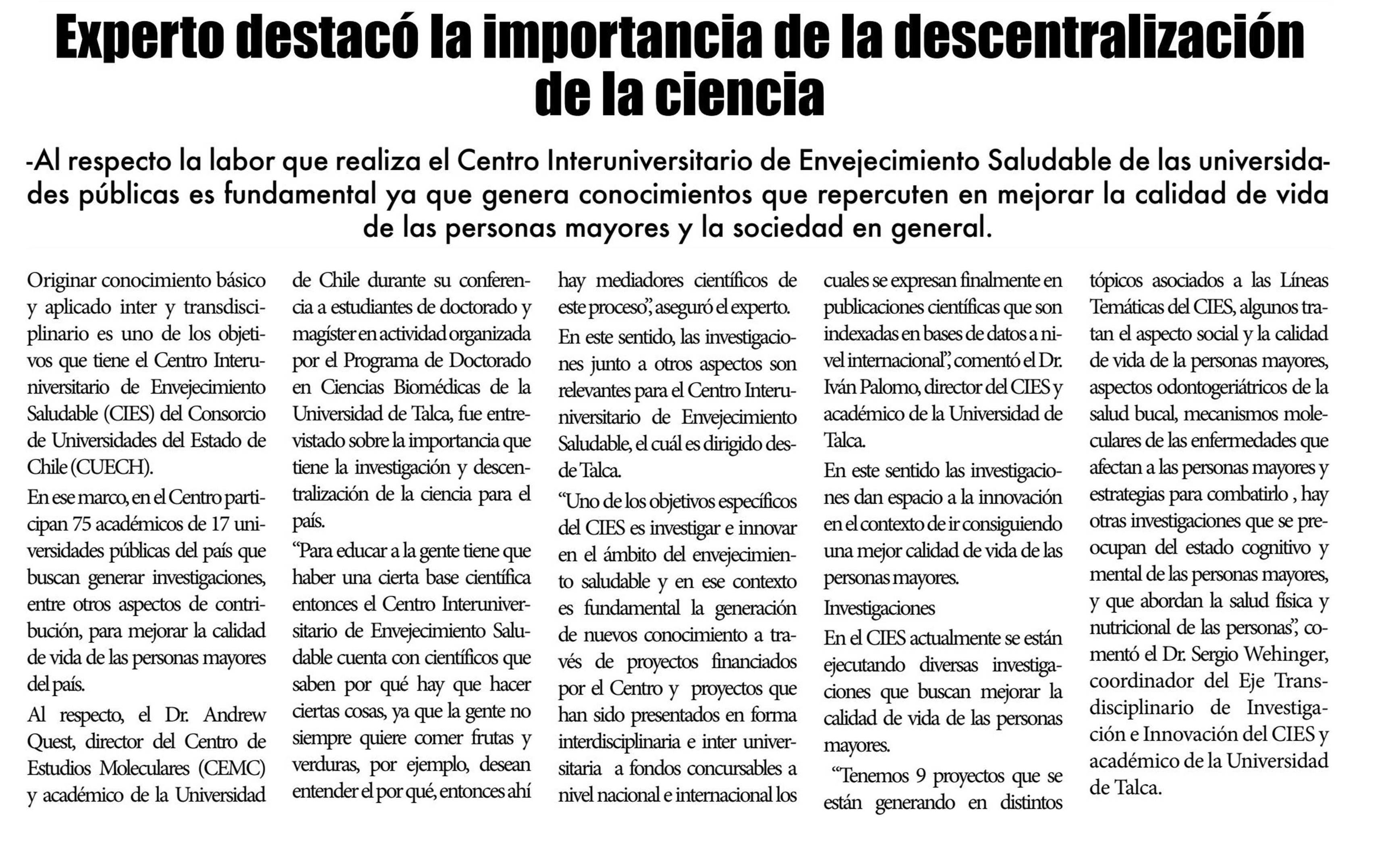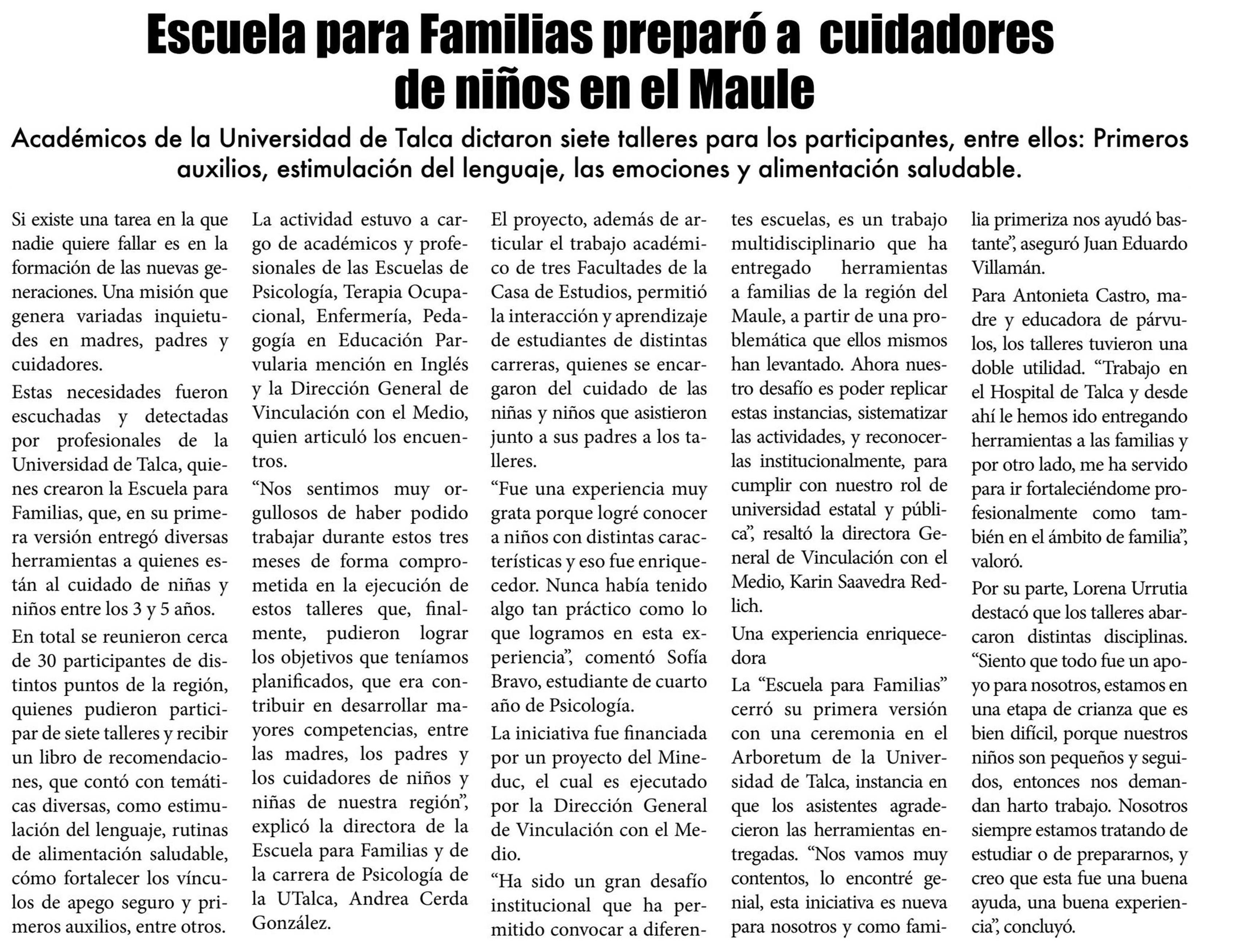 Panoramas en el Maule. Se mencionan actividades en la UTalca.