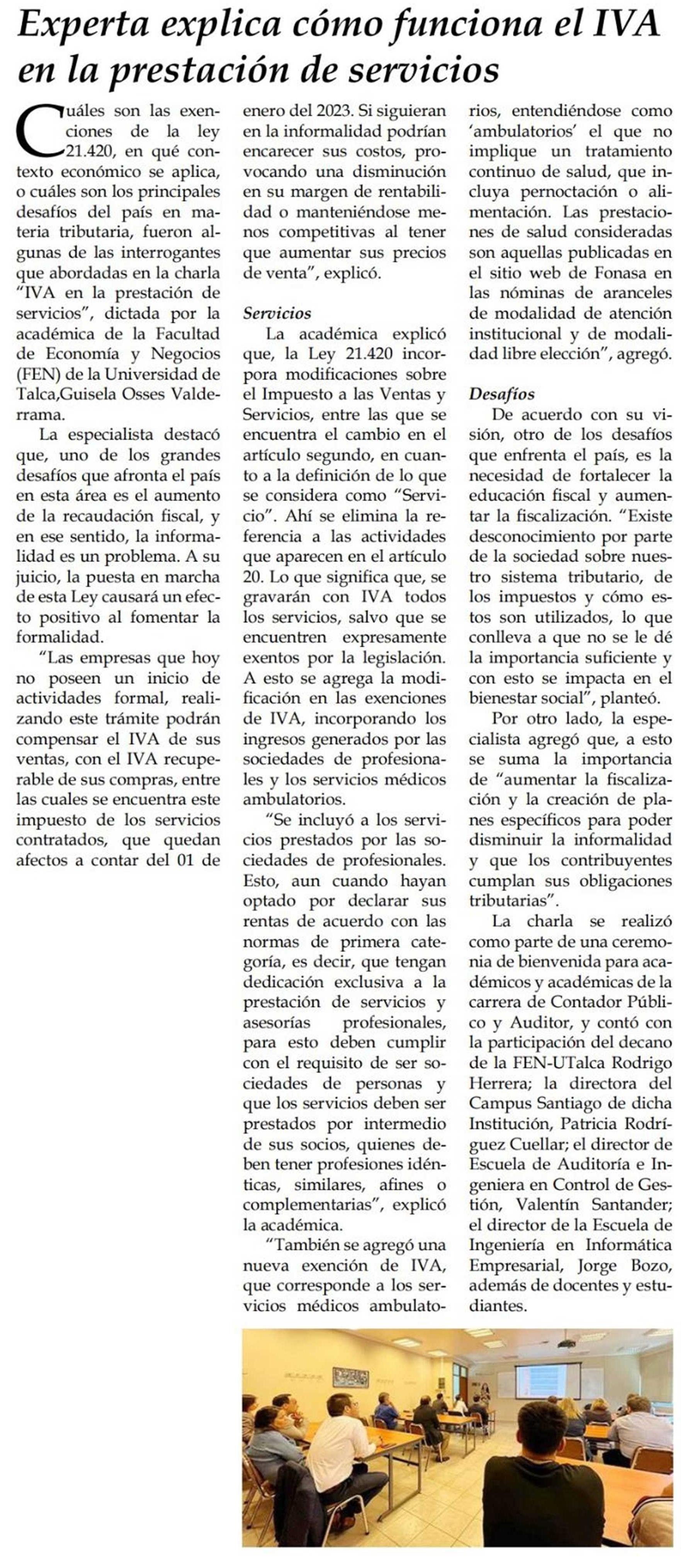 Experta explica cómo funciona el IVA en la prestación de servicios. Se refiere Guisela Osses Valderrama, académica de la Facultad de Economía y Negocios (FEN).