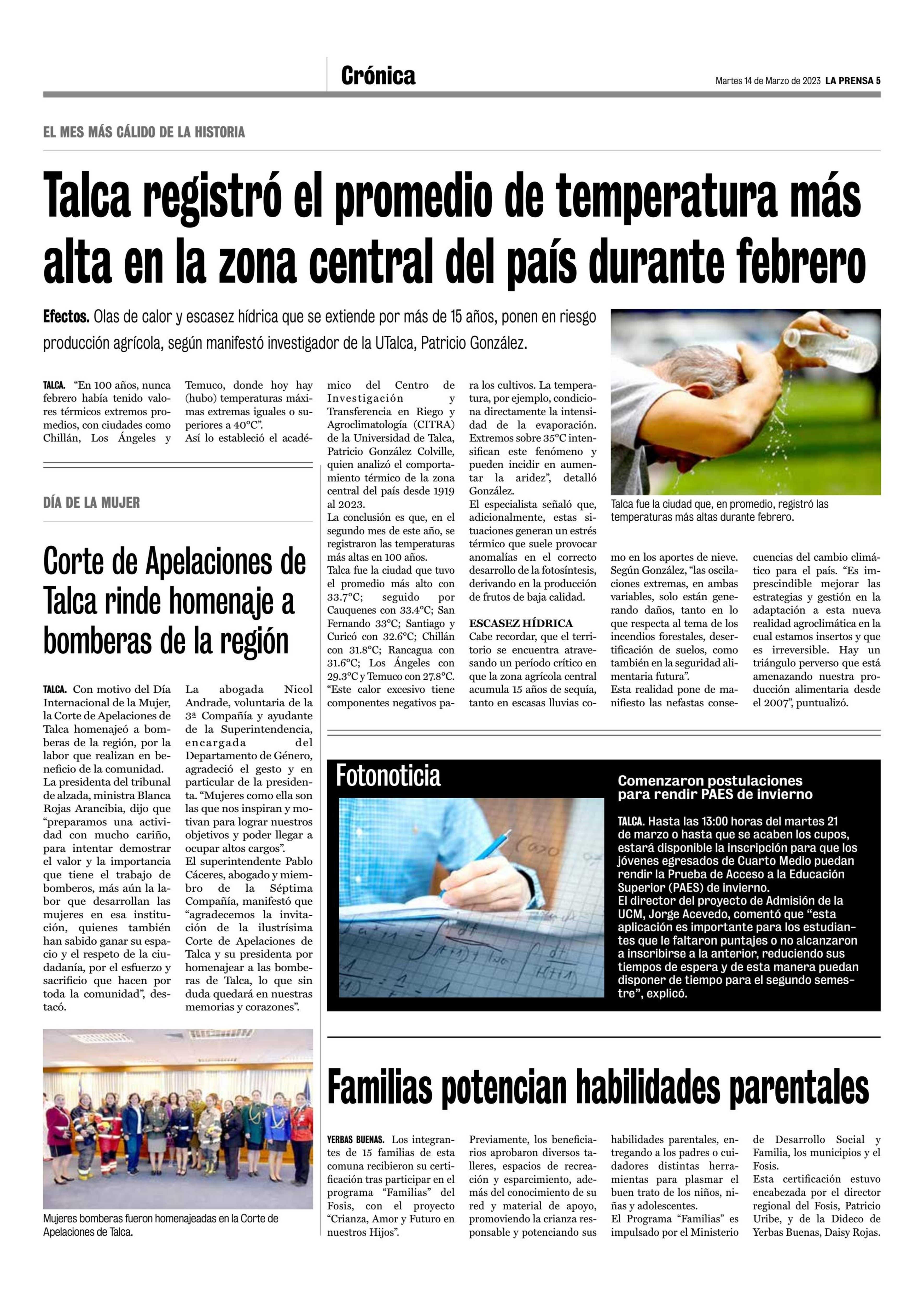 Récord de calor en febrero. Se menciona estudio de la UTalca.
