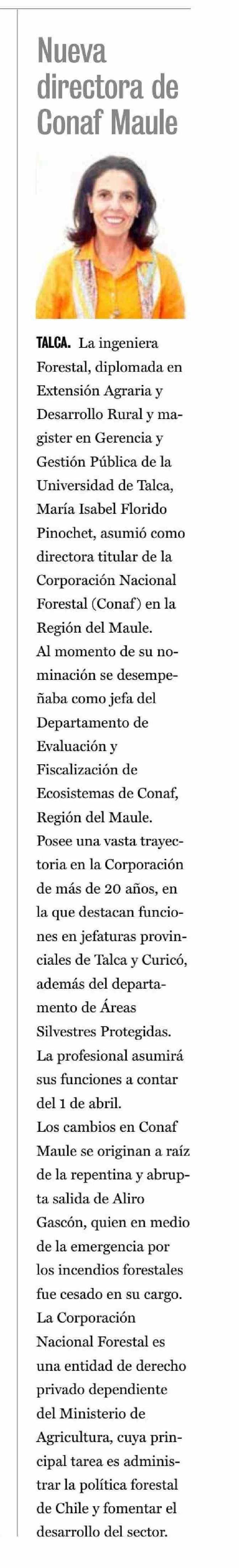 Nueva directora de Conaf Maule. Se menciona a la UTalca.