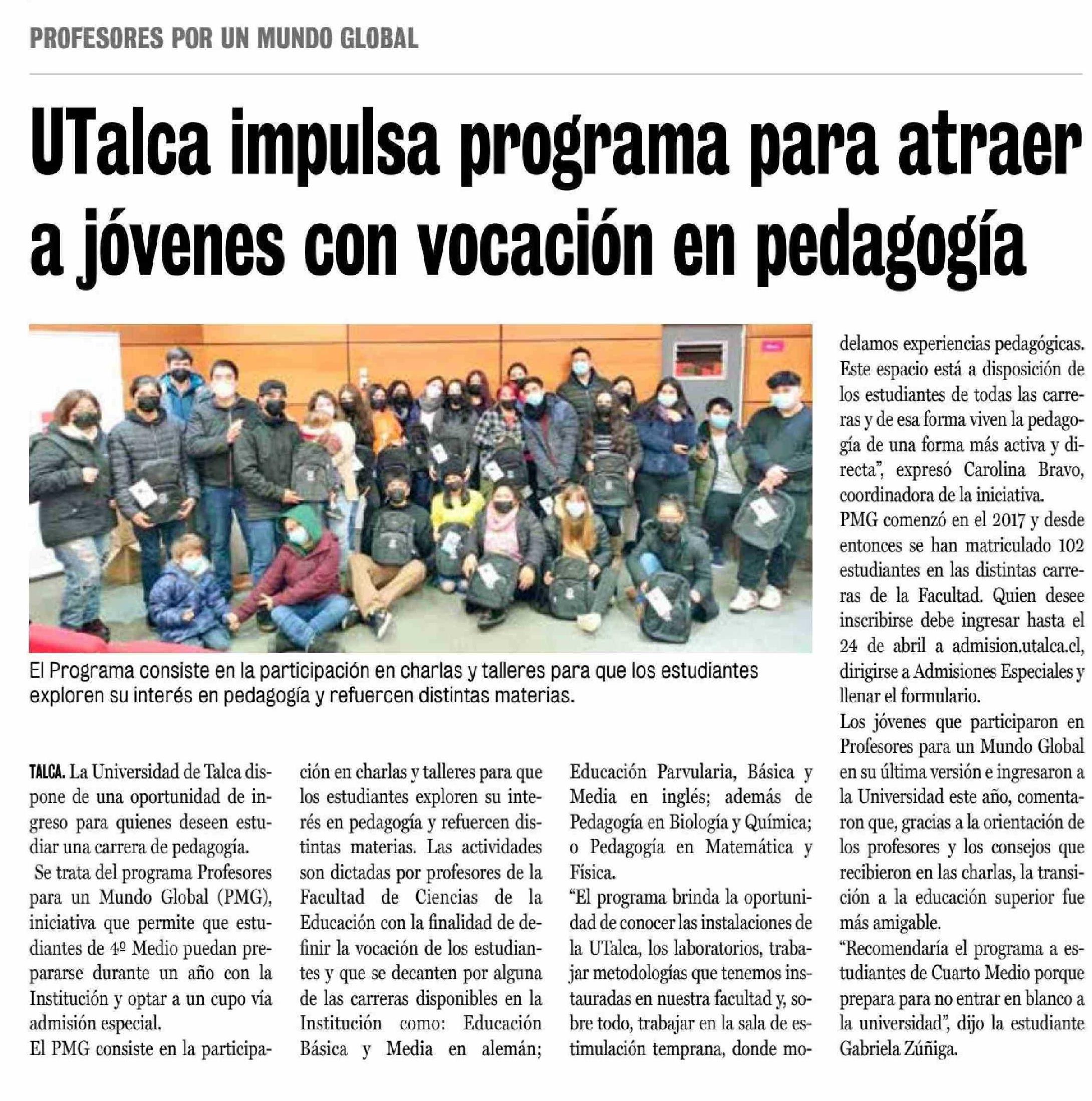 Dos reformas en busca de acuerdos. Se menciona a la Universidad de Talca.