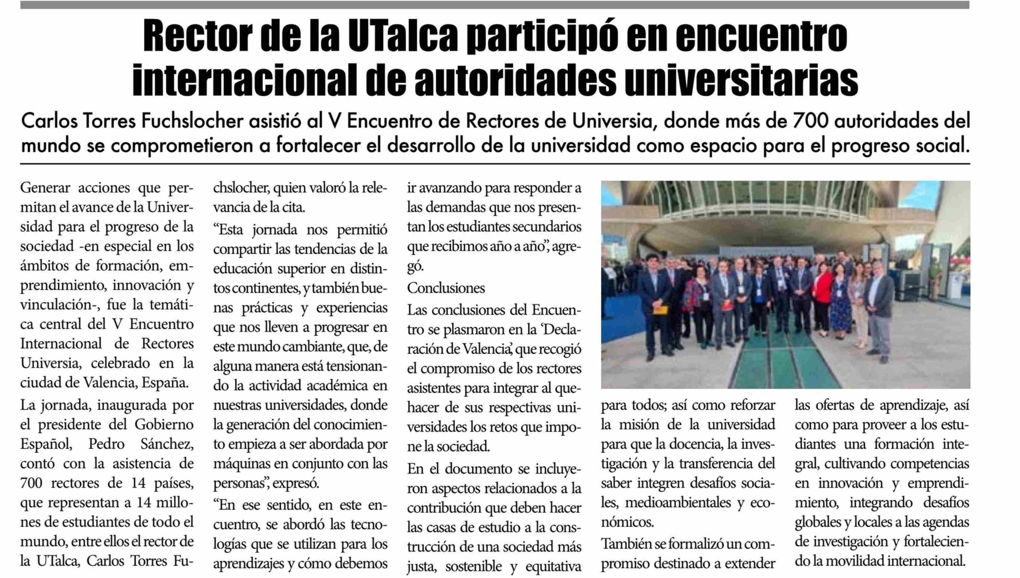 Rector de la UTalca participó en encuentro internacional de autoridades universitarias. Se refiere Carlos Torres Fuchslocher, rector.