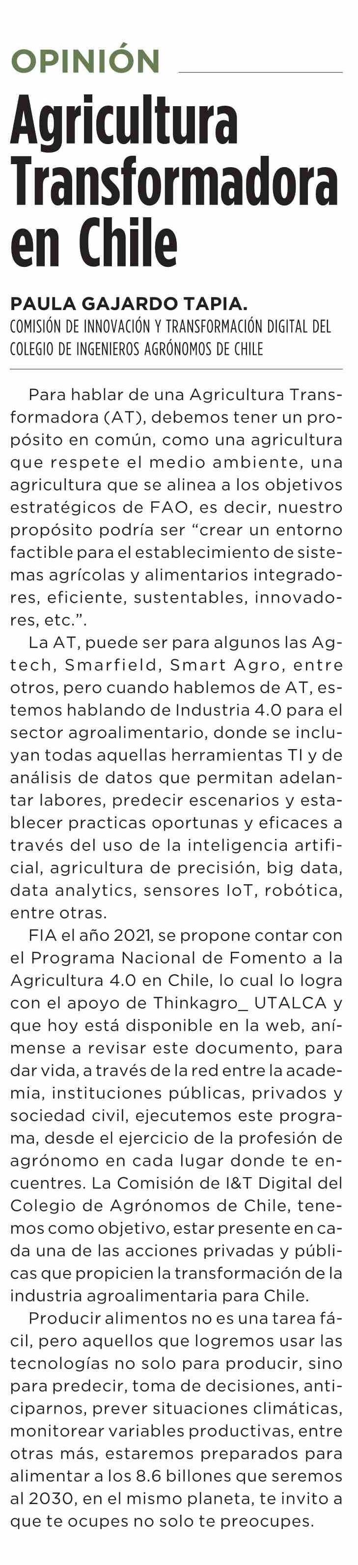 Agricultura transformadora en Chile. Se menciona a la Universidad de Talca.
