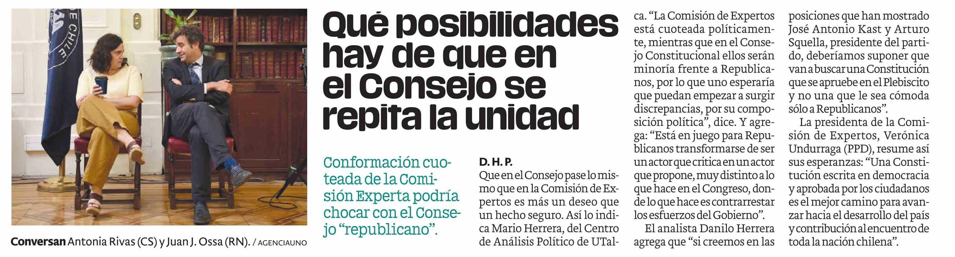 Qué posibilidades hay de que en el Consejo se repita la unidad. Se refiere Mario Herrera Muñoz, investigador y académico del Centro de Análisis Político (CAP).