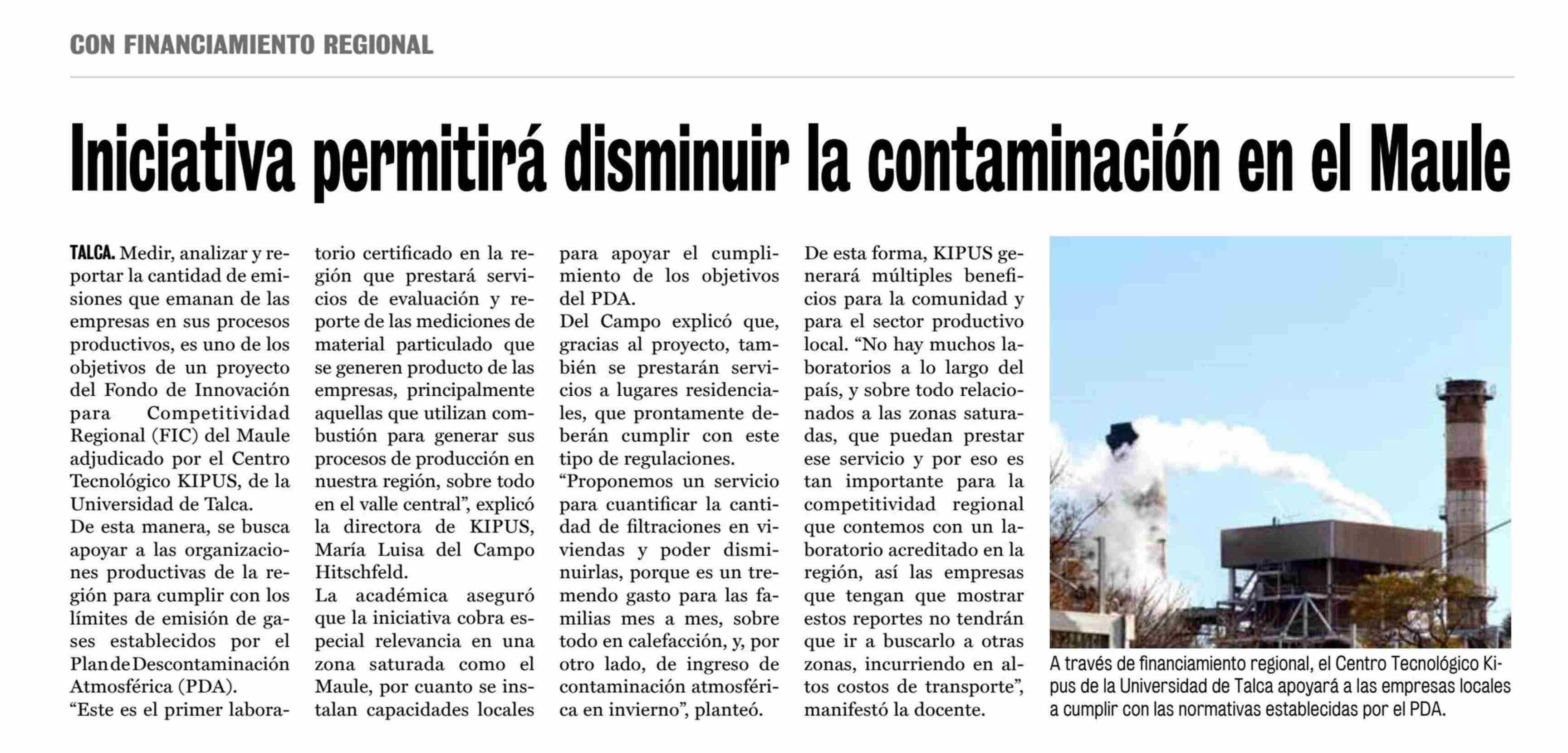 Iniciativa permitirá disminuir la contaminación en el Maule. Se refiere María Luisa Del Campo Hitschfeld, directora del Centro Tecnológico Kipus.