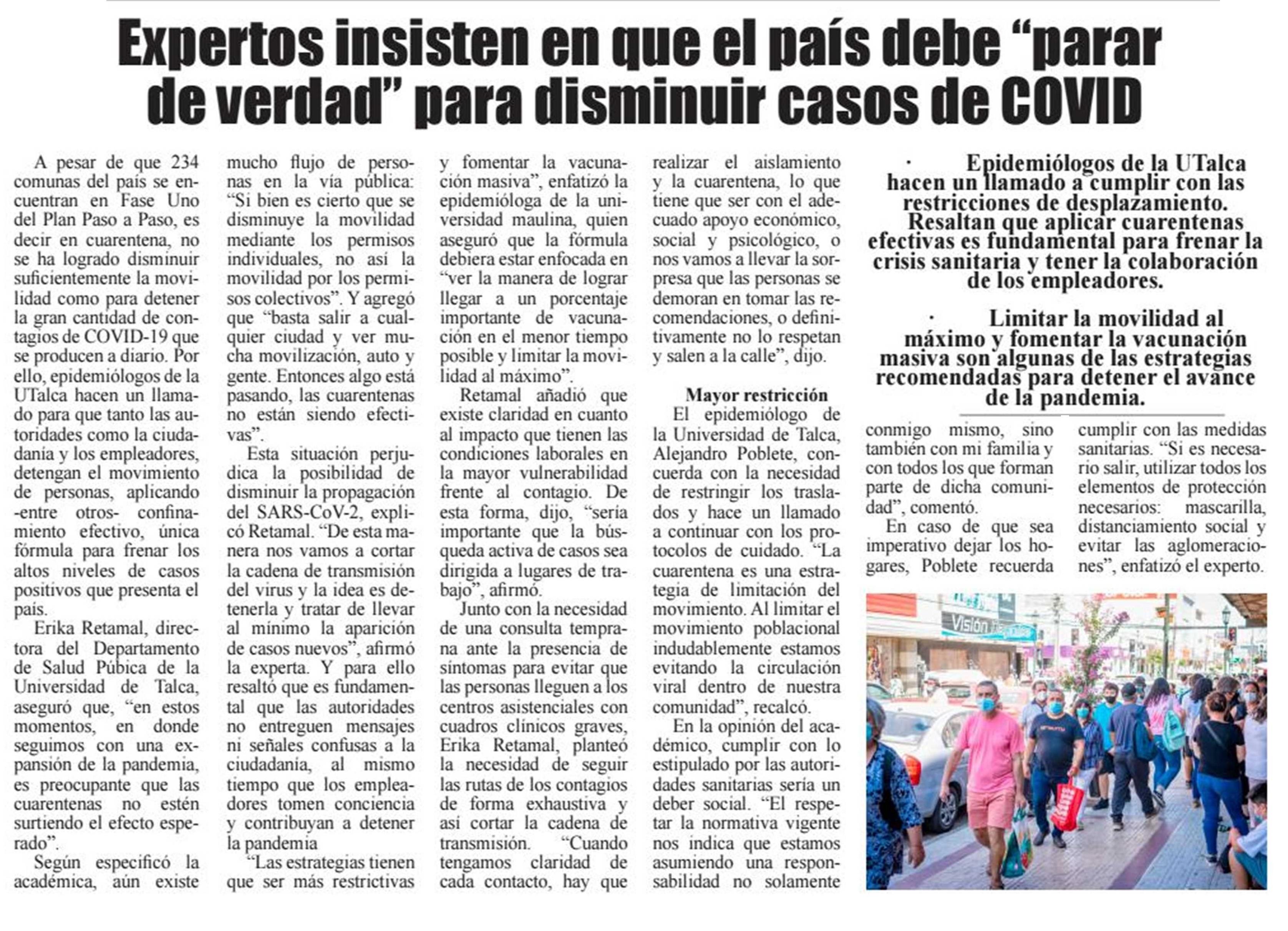 Expertos de la UTalca insisten en que el país debe “parar de verdad”.