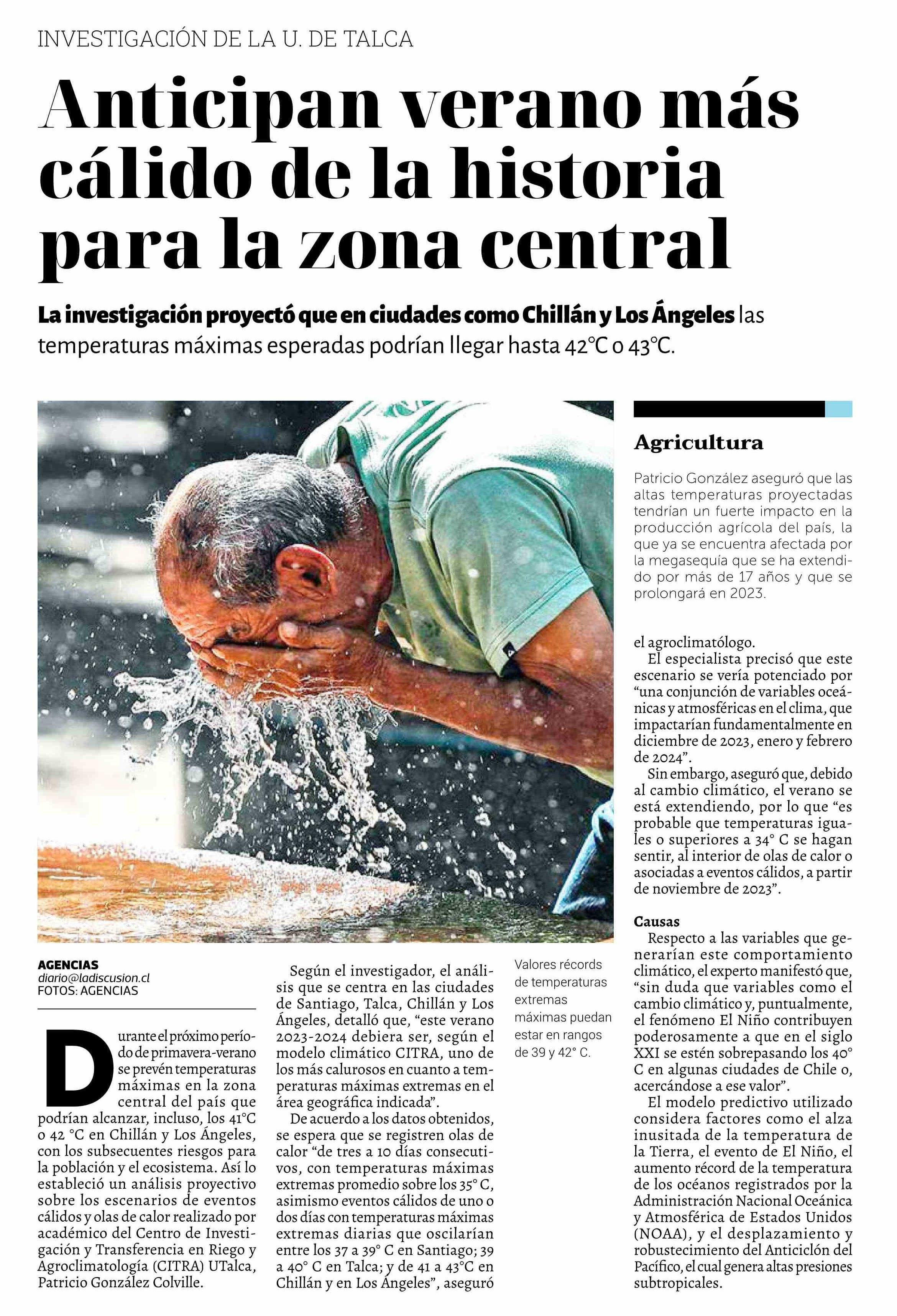 Pronostican calor extremo para Chile desde noviembre. Se menciona a la Universidad de Talca.
