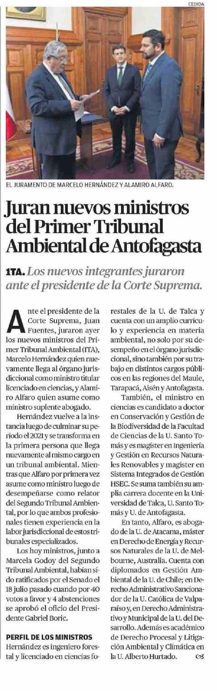Juran nuevos ministros del primer tribunal ambiental. Se menciona a la Universidad de Talca.