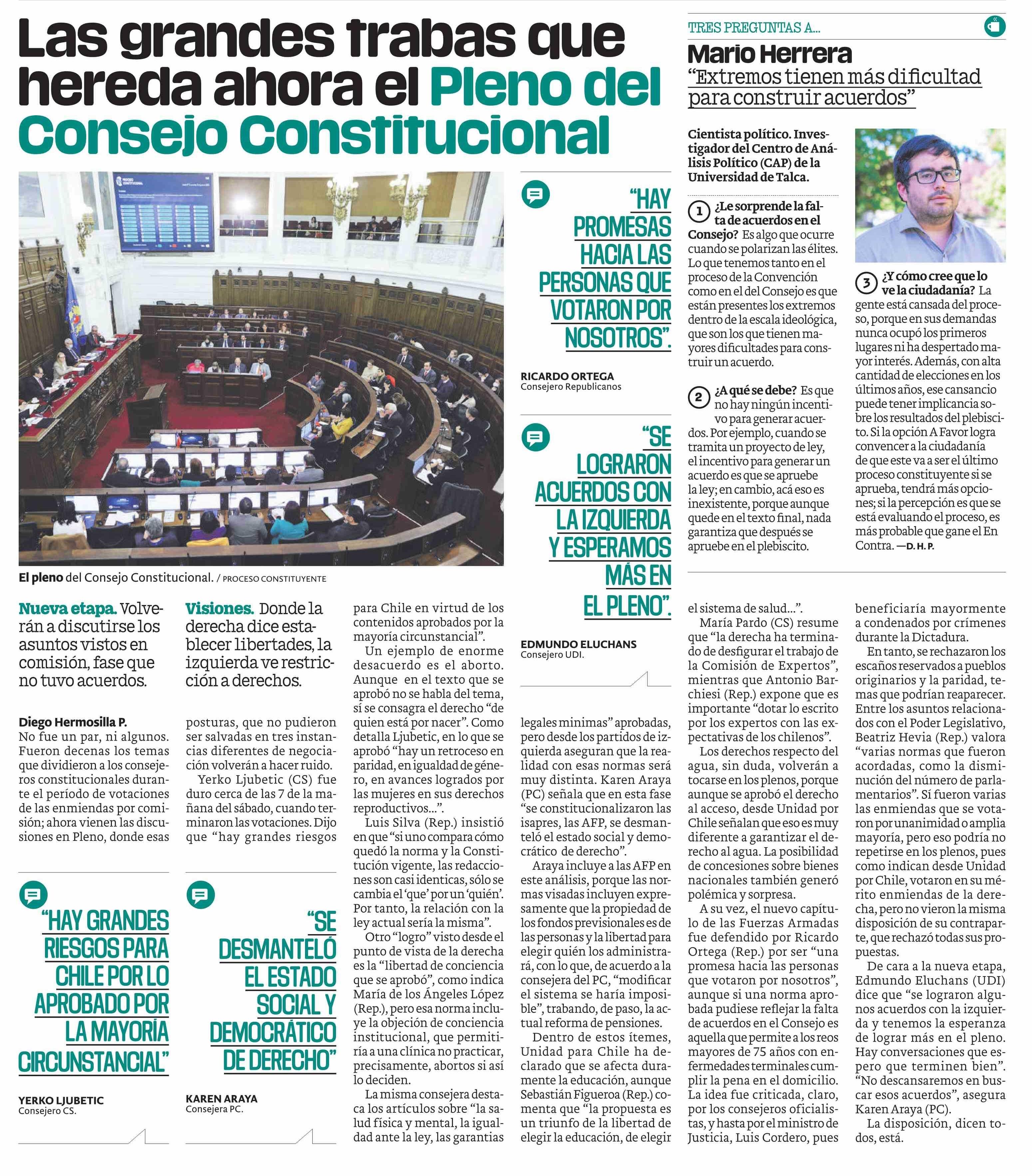 Las grandes trabas que hereda ahora el Pleno del Consejo Constitucional. Se refiere Mario Herrera, cientista política y académico del Centro de Análisis Político (CAP).