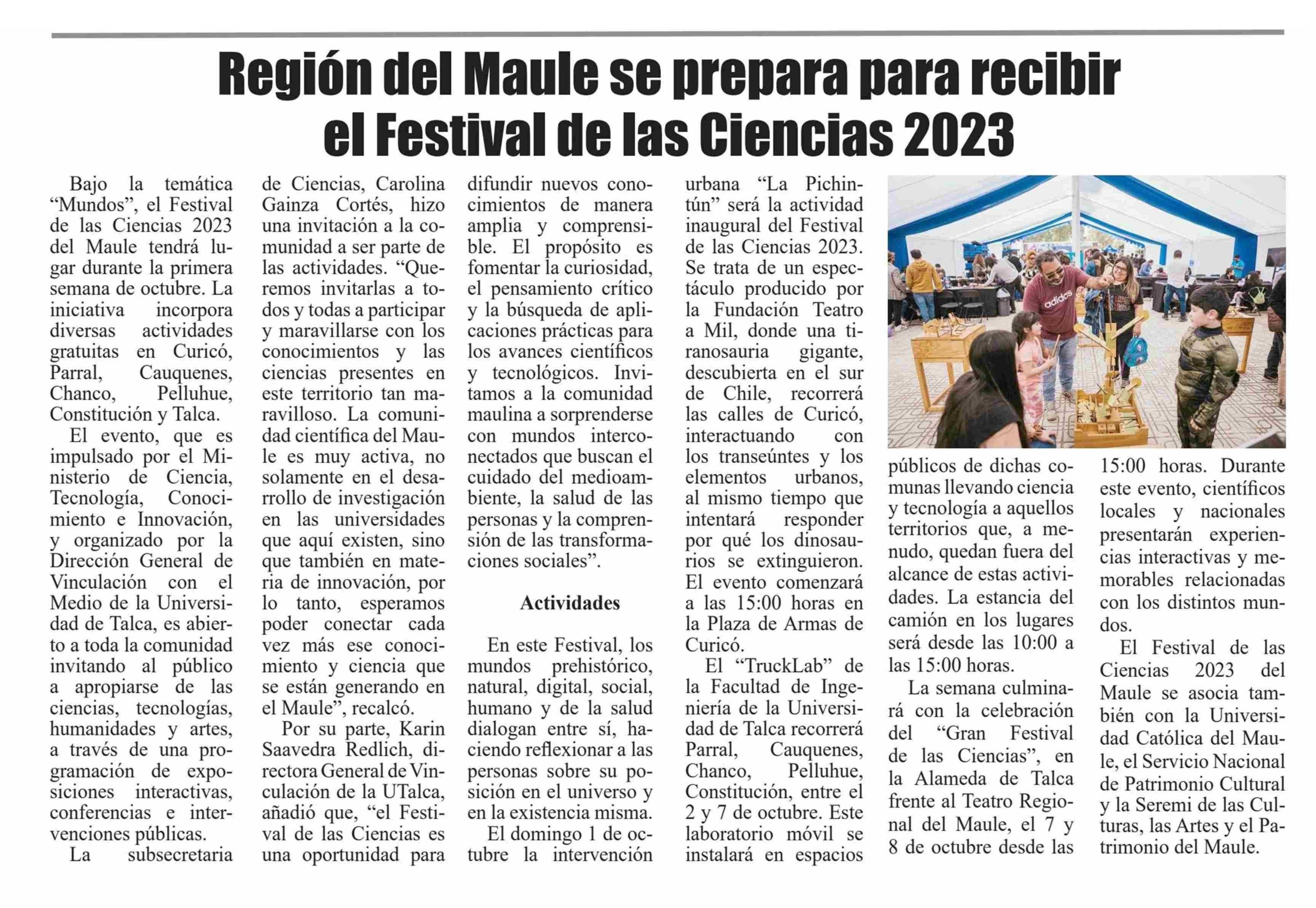Región del Maule se prepara para recibir el Festival de las Ciencias 2023. Se refiere Karin Saavedra Redlich, directora General de Vinculación con el Medio.