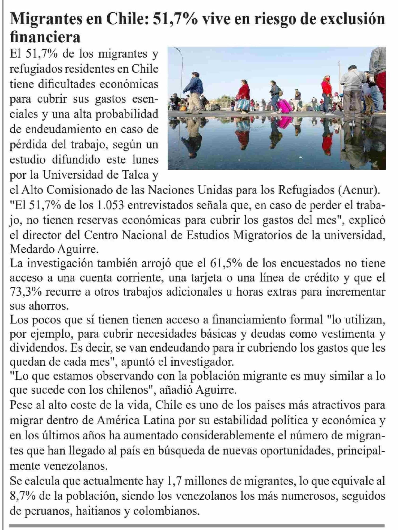 Situación financiera de los inmigrantes en Chile. Se refiere el director del Centro Nacional de Estudios Migratorios, Medardo Aguirre.