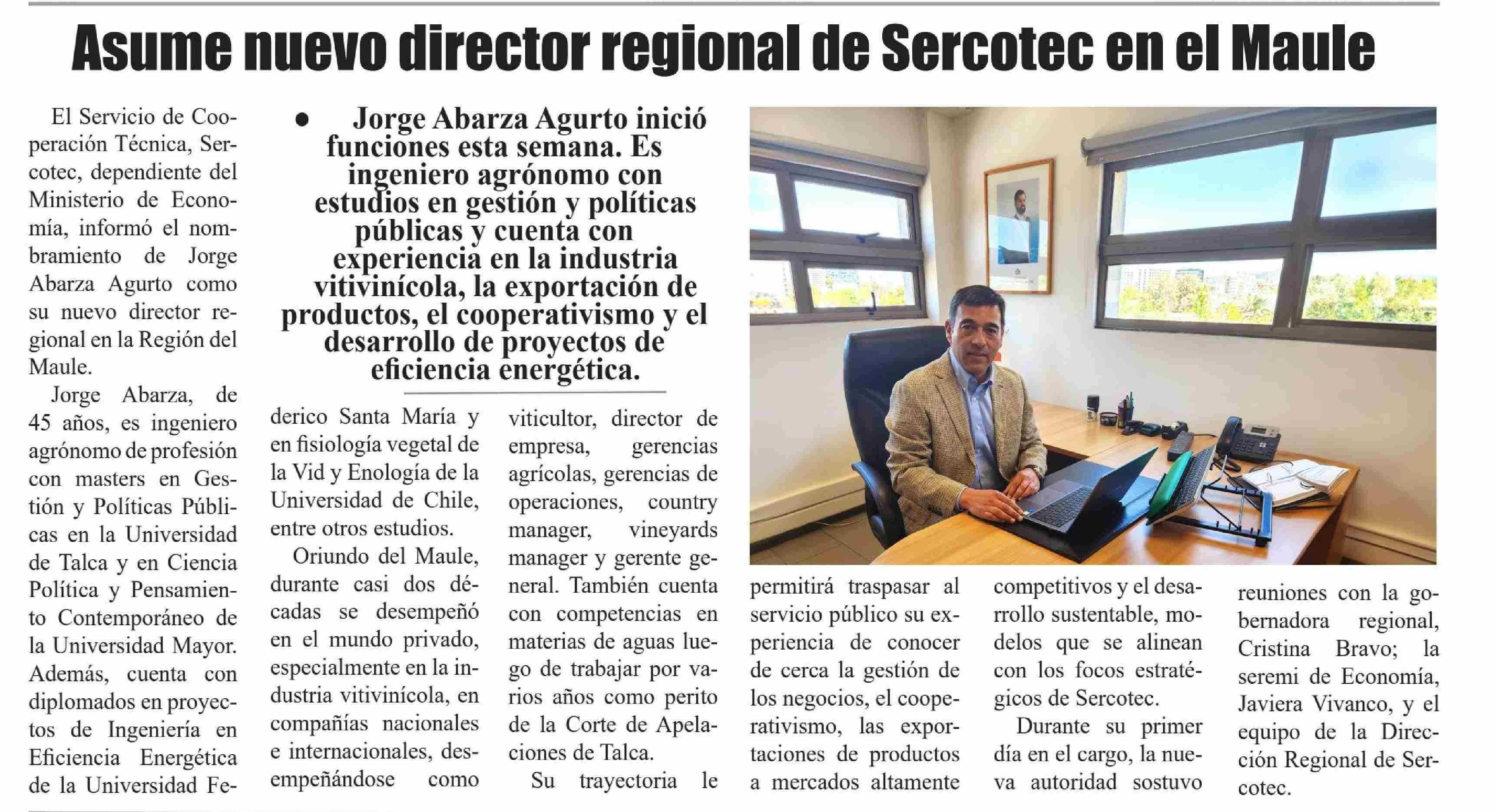 Asume nuevo director regional de Sercotec en el Maule. Se menciona a la Universidad de Talca.