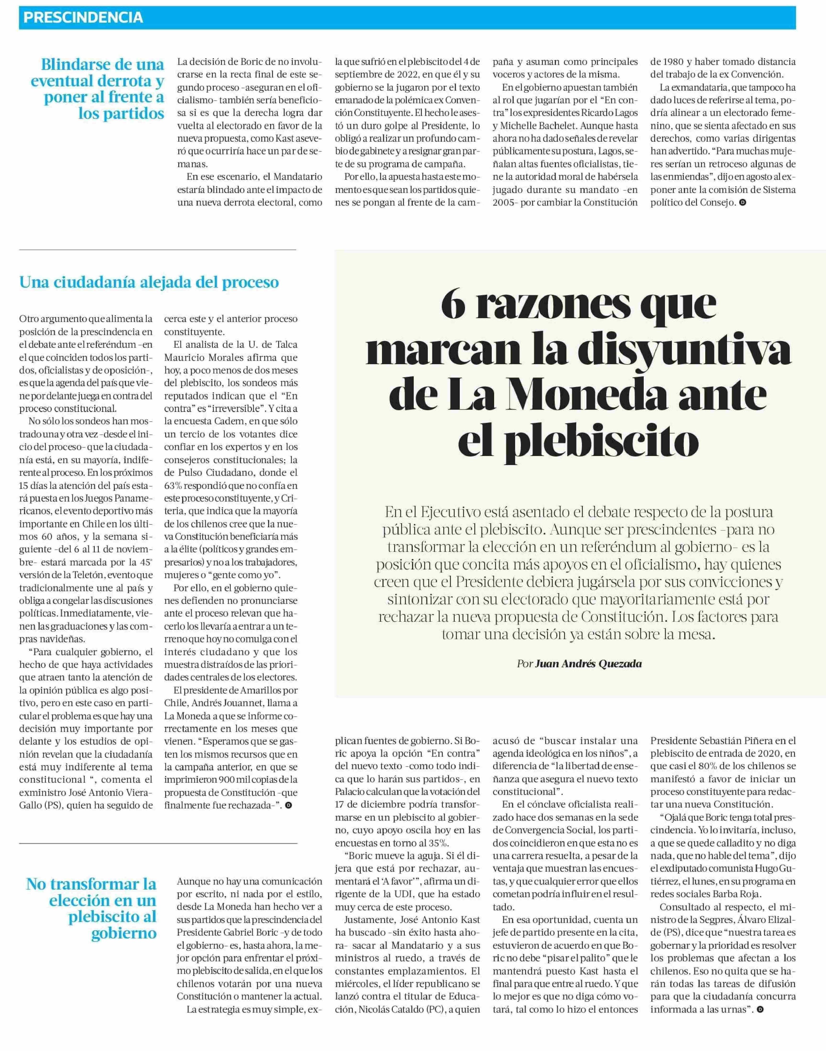 6 razones que marcan la disyuntiva de La Moneda ante el plebiscito. Se refiere Mauricio Morales, director del Centro de Análisis Político (CAP).