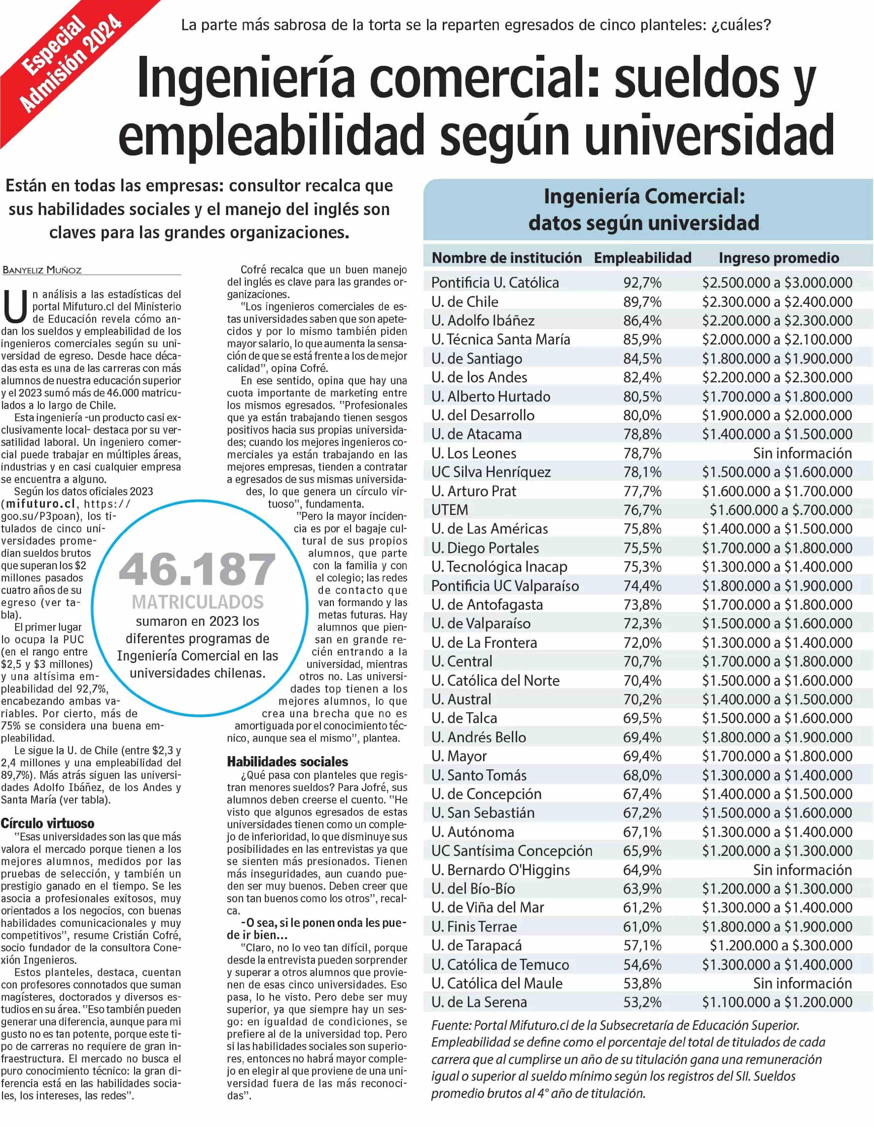 Ingeniería comercial: sueldos y empleabilidad según universidad. Se menciona la Universidad de Talca.