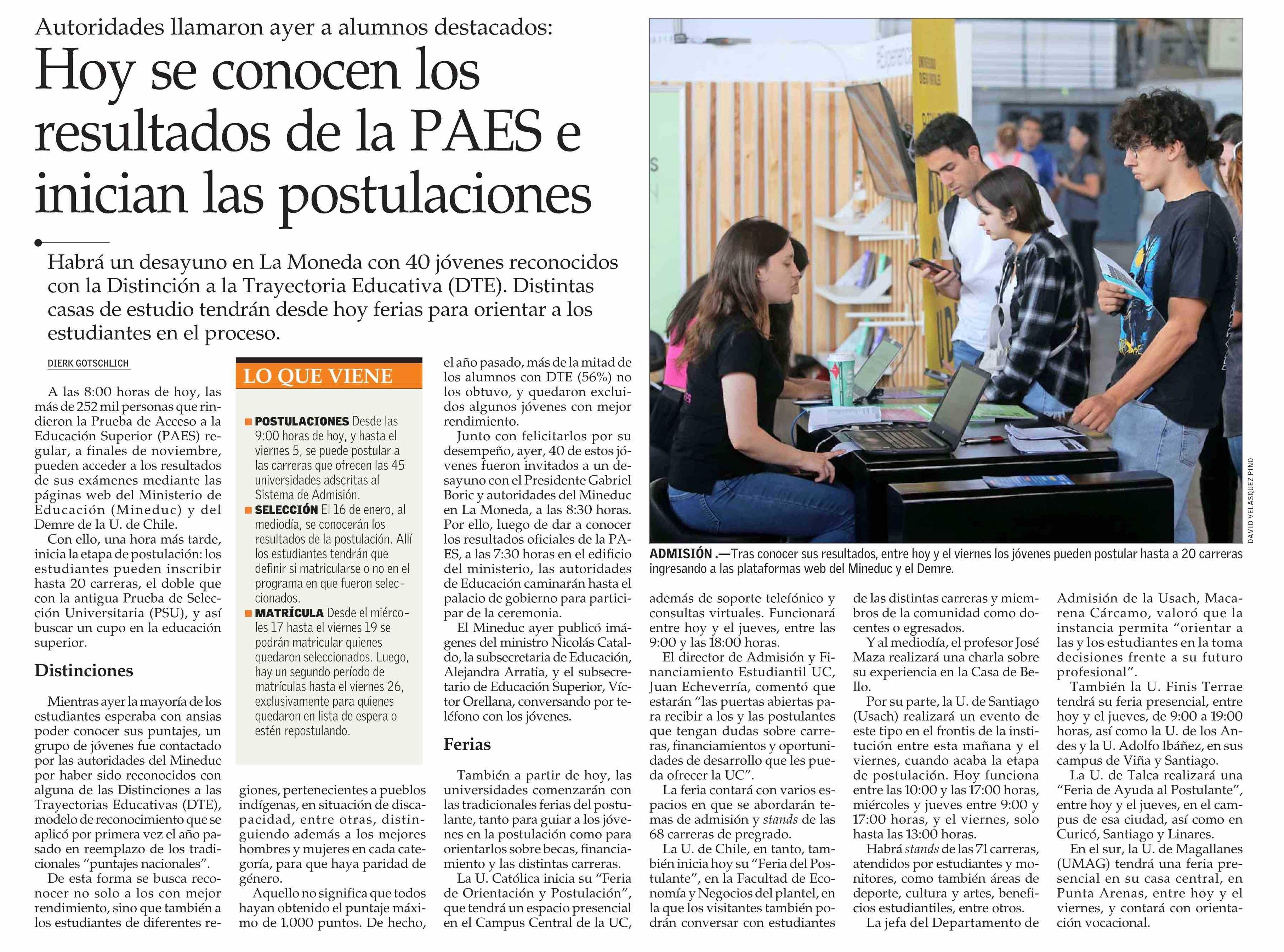 PAES 2023: Este martes se conocen los puntajes e inicia el periodo de postulaciones a las universidades. Se menciona la Universidad de Talca.
