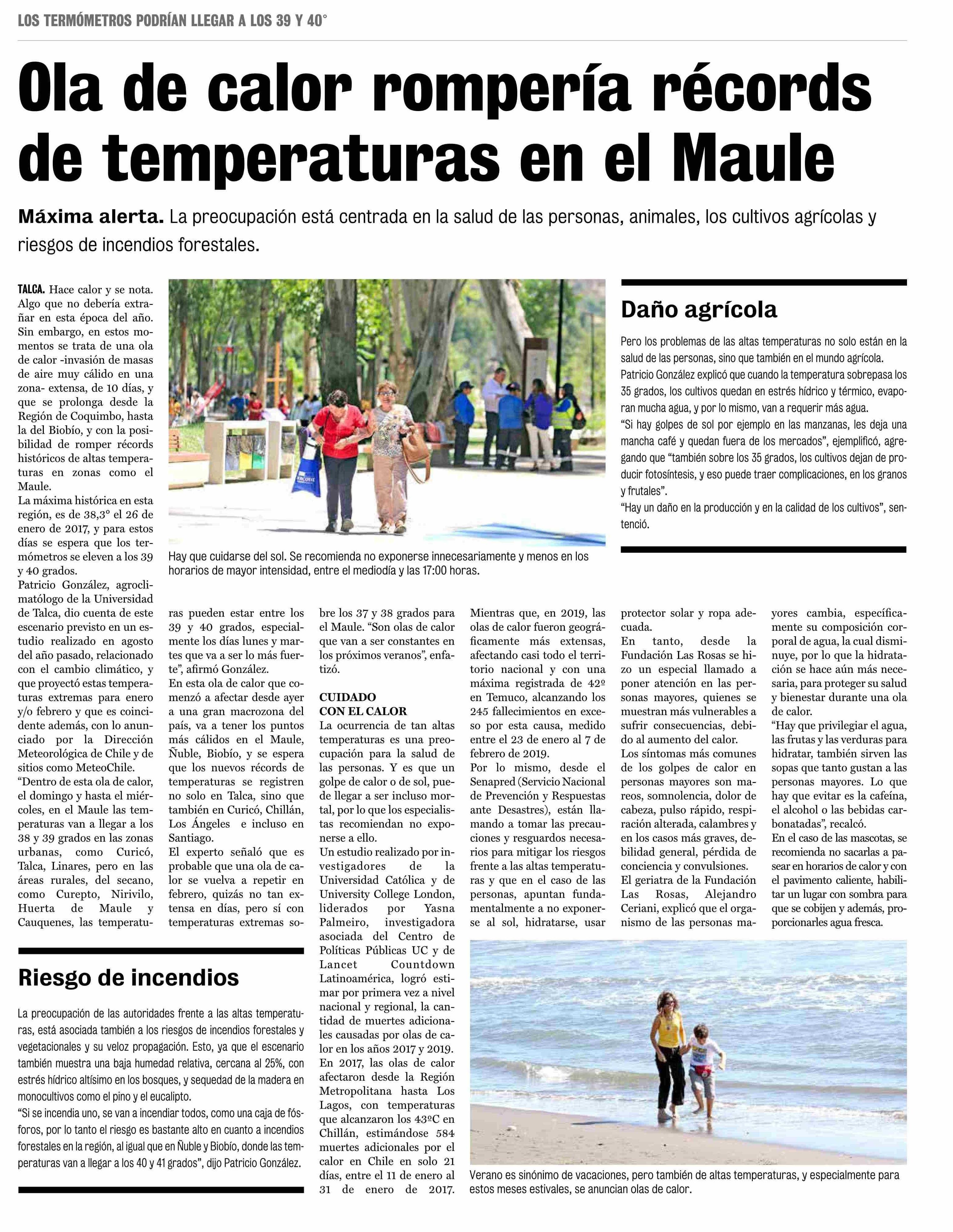 Ola de calor rompería récords de temperaturas en el Maule. Se refiere Patricio González Colville, agroclimatólogo y académico del Centro de Investigación y Transferencia en Riego y Agroclimatología (CITRA).