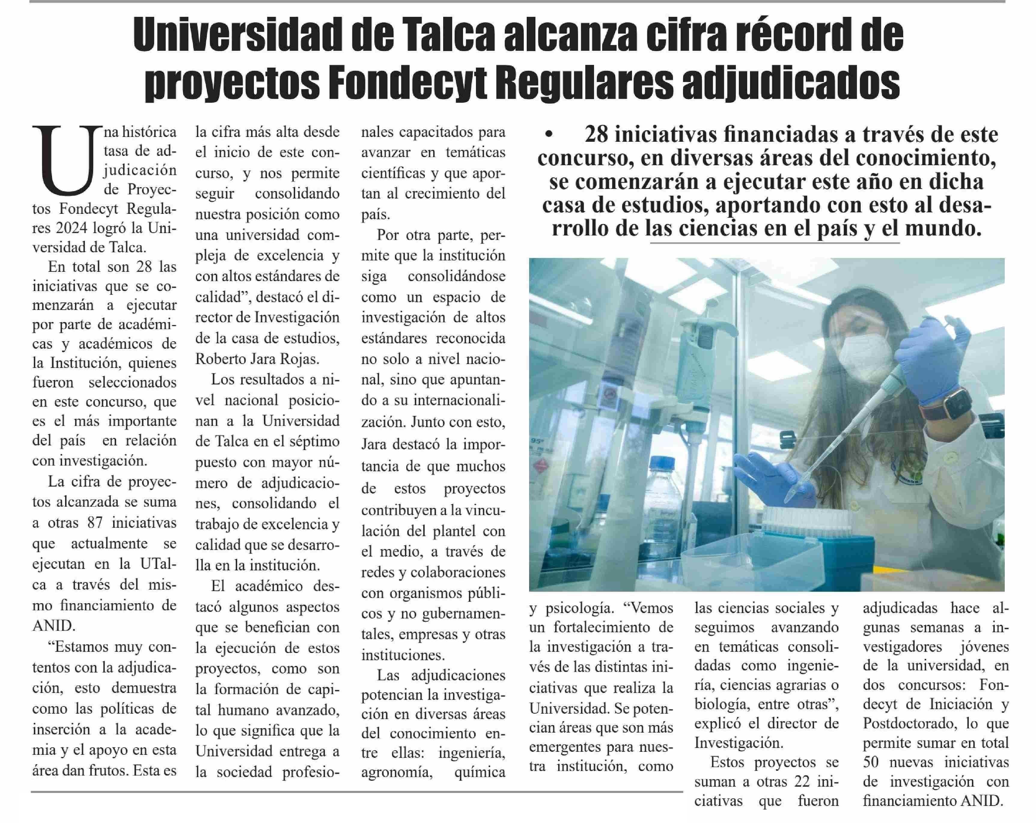 Universidad de Talca alcanza cifra récord de proyectos Fondecyt Regulares adjudicados. Se refiere Roberto Jara Rojas, director de Investigación.